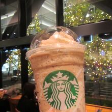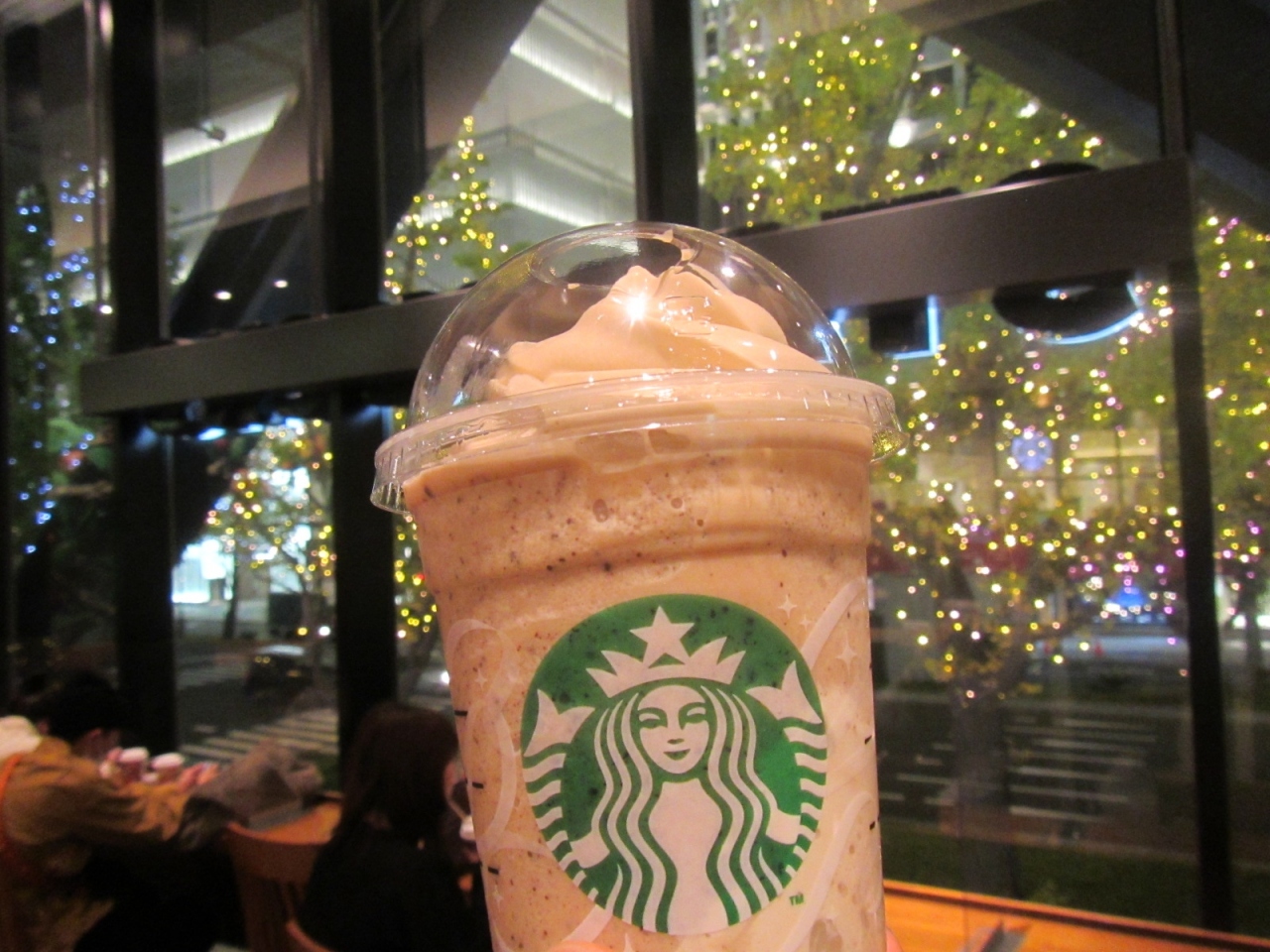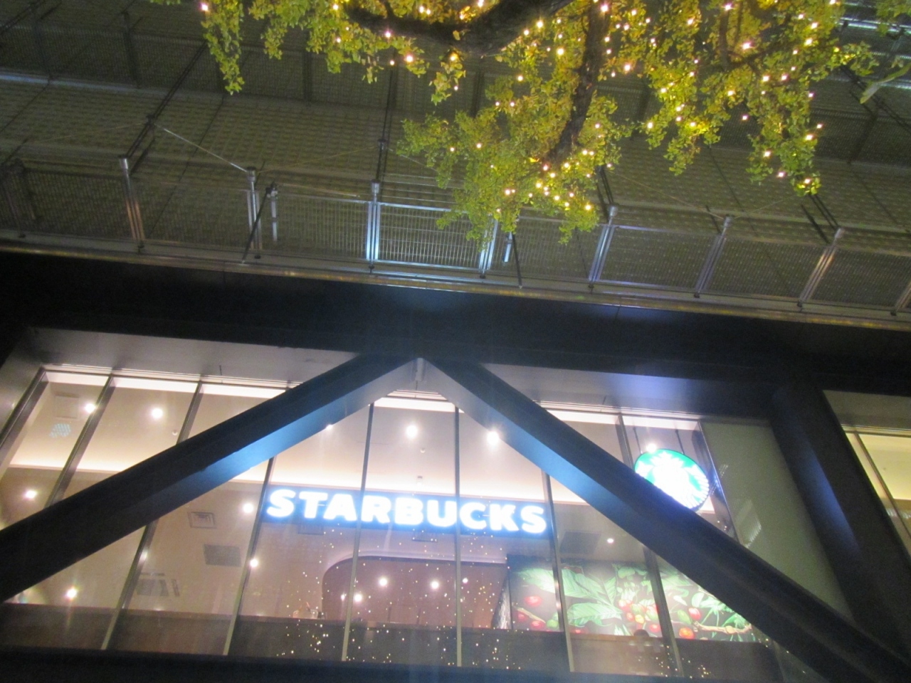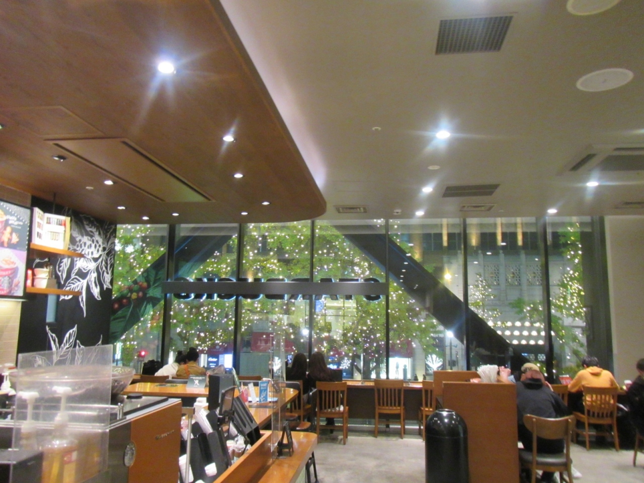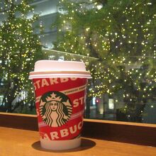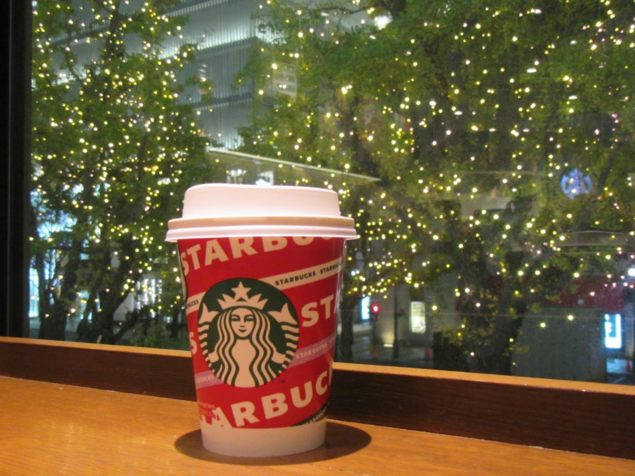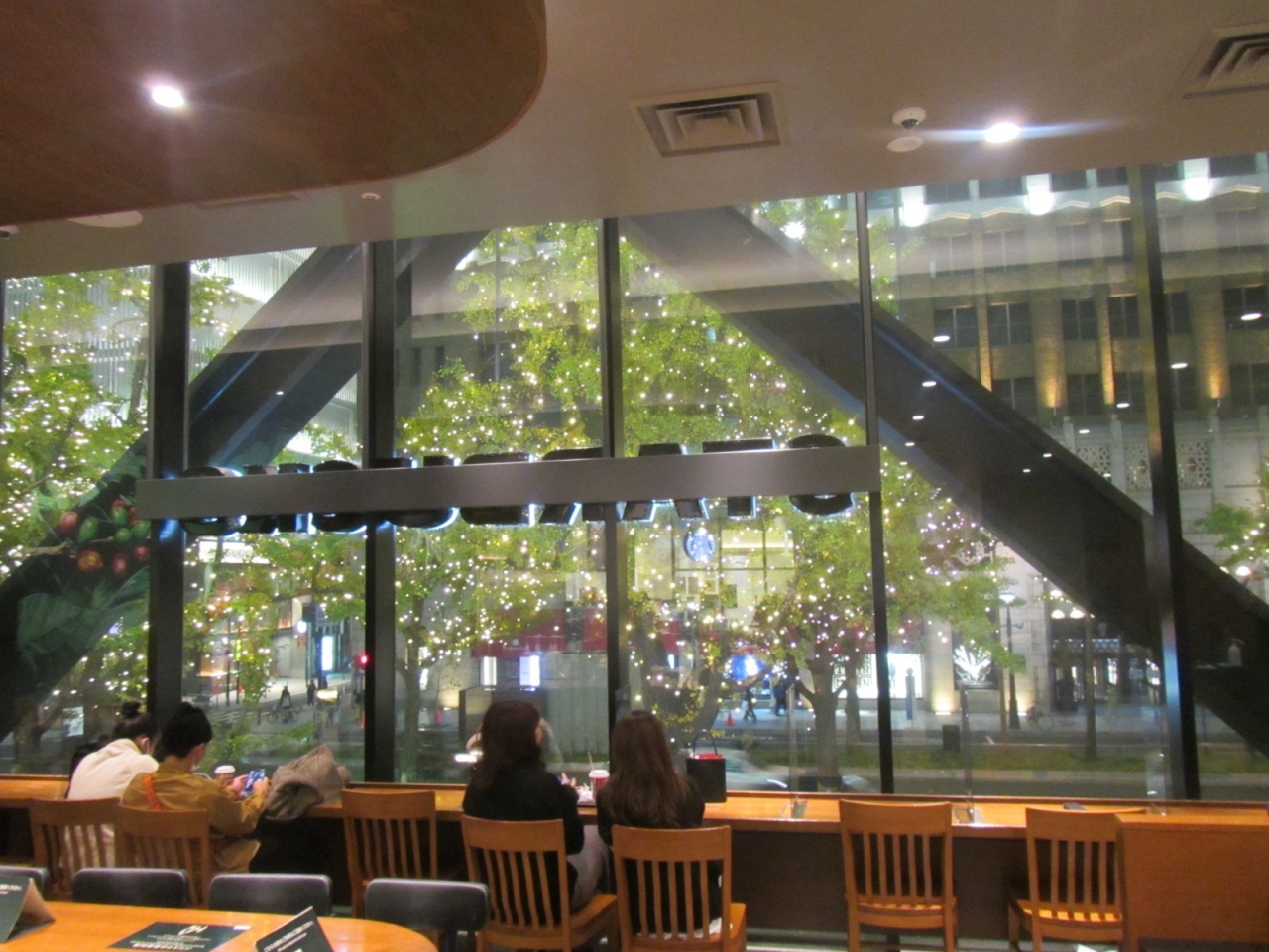 2階のスタバでイルミネーションを目の前に楽しみながらのコーヒー