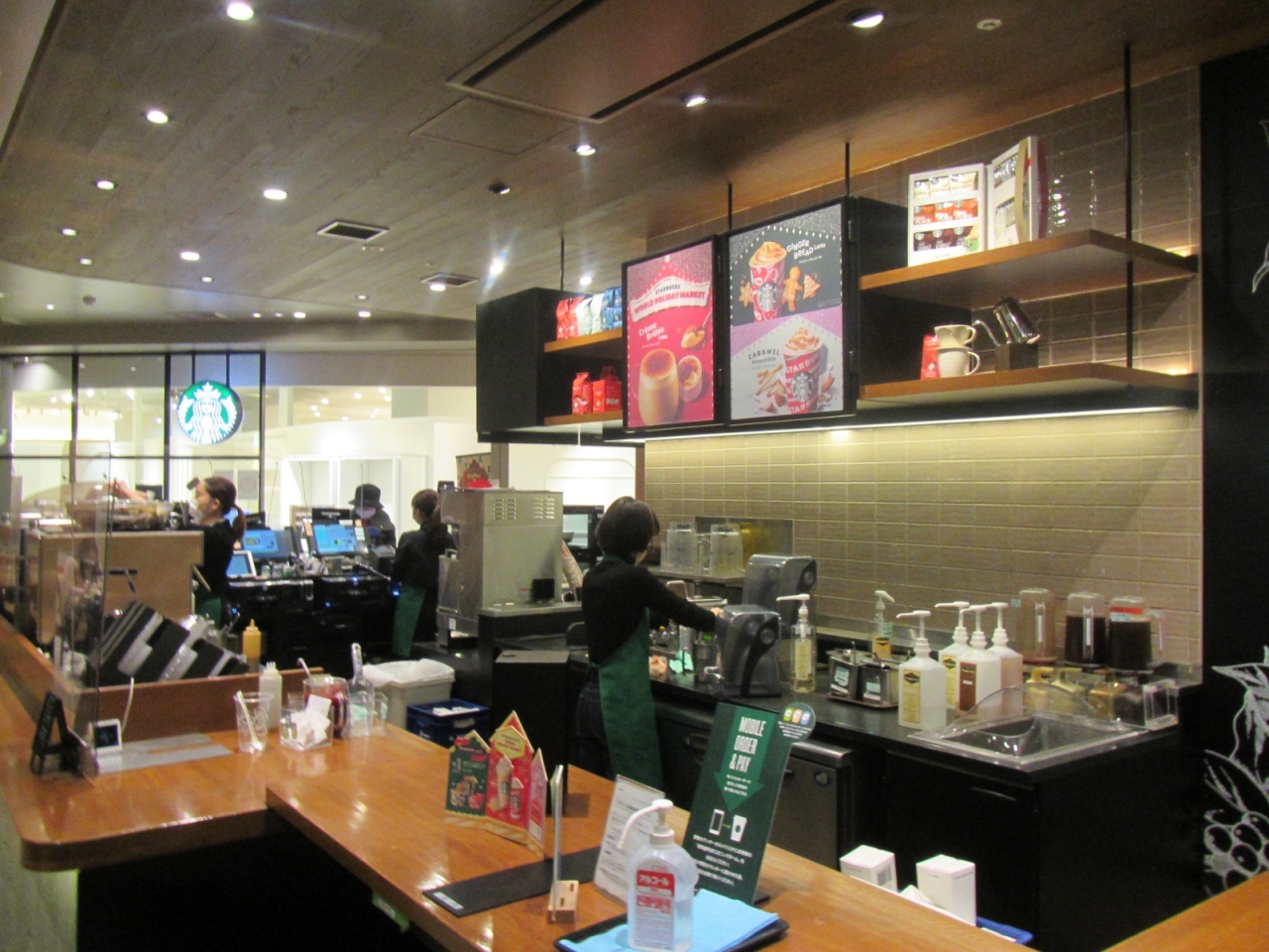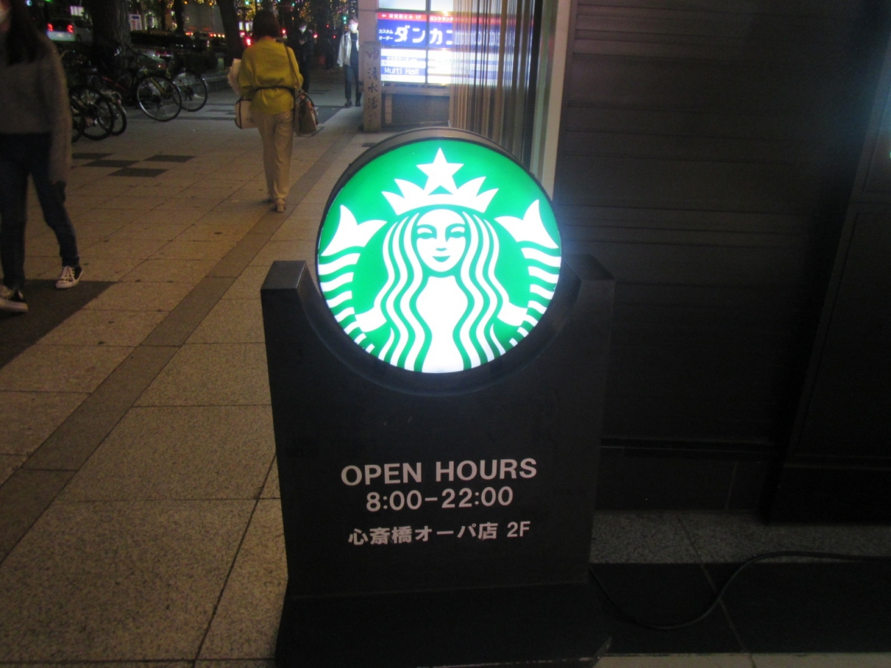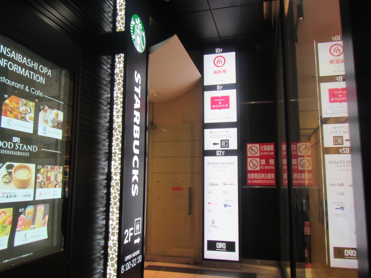 オーパの各店舗が21時までなのに対し、スタバは22時までやっているため、遅い時間になると、スタバのビル内部側の扉は閉まり、お店の閉まった通り側のエレベーターからの出入りとなるため、遅くなると雑居ビルの裏口的なちょっと怪しげ雰囲気が漂います。
