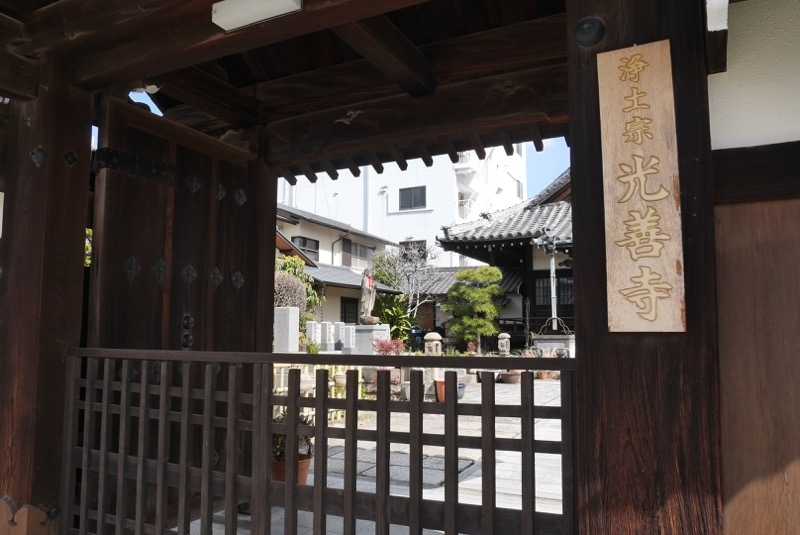 このあたりにはとてもお寺が多く、そのうちのひとつです。光善寺の名前のごとく、お寺の名前の彫られたプレートの文字が金色がかっていました。柵があり、おそらくは用事がないと入れないタイプのお寺なのですが、柵の向こうはきれいに整えられていて、見られることを意識されているのだろうと感じました。