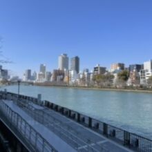 天満橋で地下鉄から京阪線に乗る際に、時間が少し余ったので外に出ると川がありました。この日は天下が良くて気持ち良い雰囲気でした。