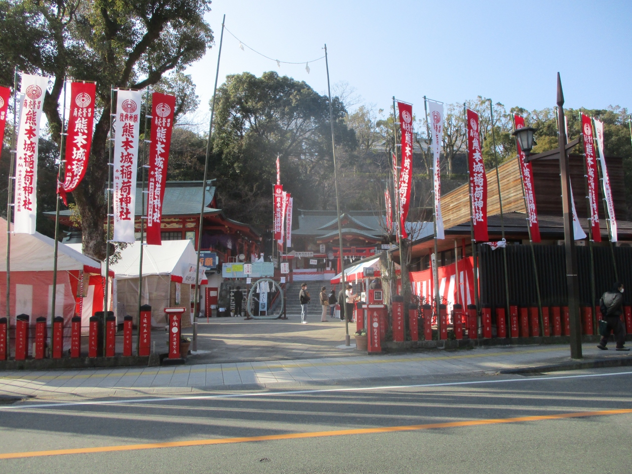 宿泊先のアークホテルに荷物を置いてから、熊本城観光の為に、城の敷地沿いに歩いていたら、熊本大神宮の先にありました。熊本城を築城した加藤清正公が、肥後の国主として入国するにあたり勧請した神社だそうです。1月の三連休だったので、初詣客も多かった。