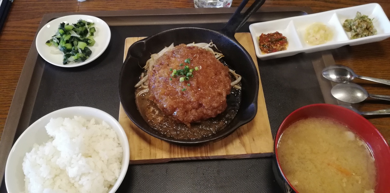 今はランチメニューはハンバーグだけで、和風、デミグラス、ニンニクなど6種類ほどありました。1180円。お値段からしたら少し内容はさみしいかなと思いますが、便利な場所、細やかなサービスを含めて、楽しいランチタイムとなりました。