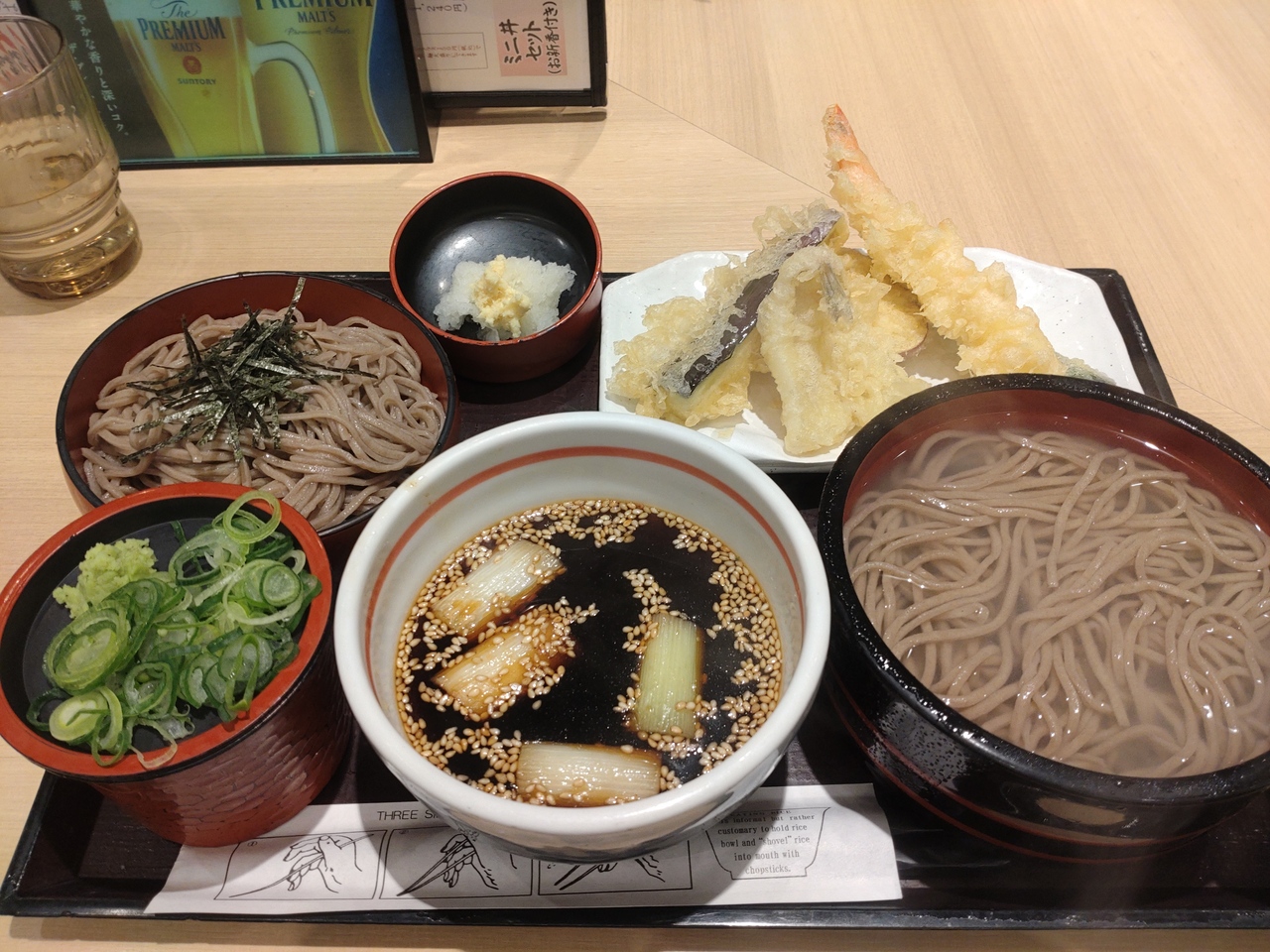 昼食を取りそこねた日の夕食で利用しました。空腹だったのでいつもより多めのセットを注文。冷たいそば、温かいそば、天ぷらで1300円くらい。空港にしては割安かと。冷たいそばはおいしかったですが、温かいほうのつゆが甘すぎると感じました。