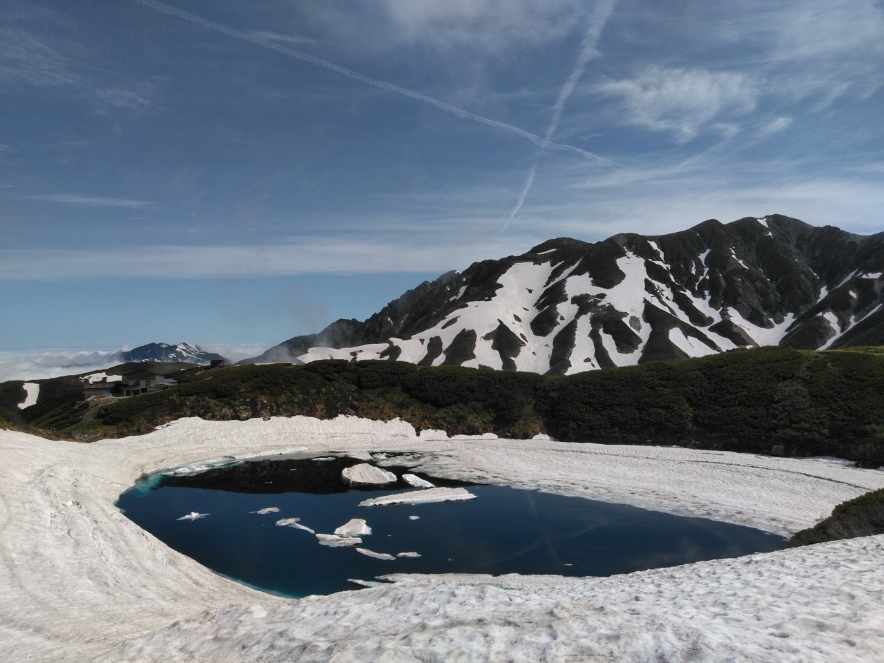 この時は7月にも関わらず、残雪があり、神秘的な青色をしていました。