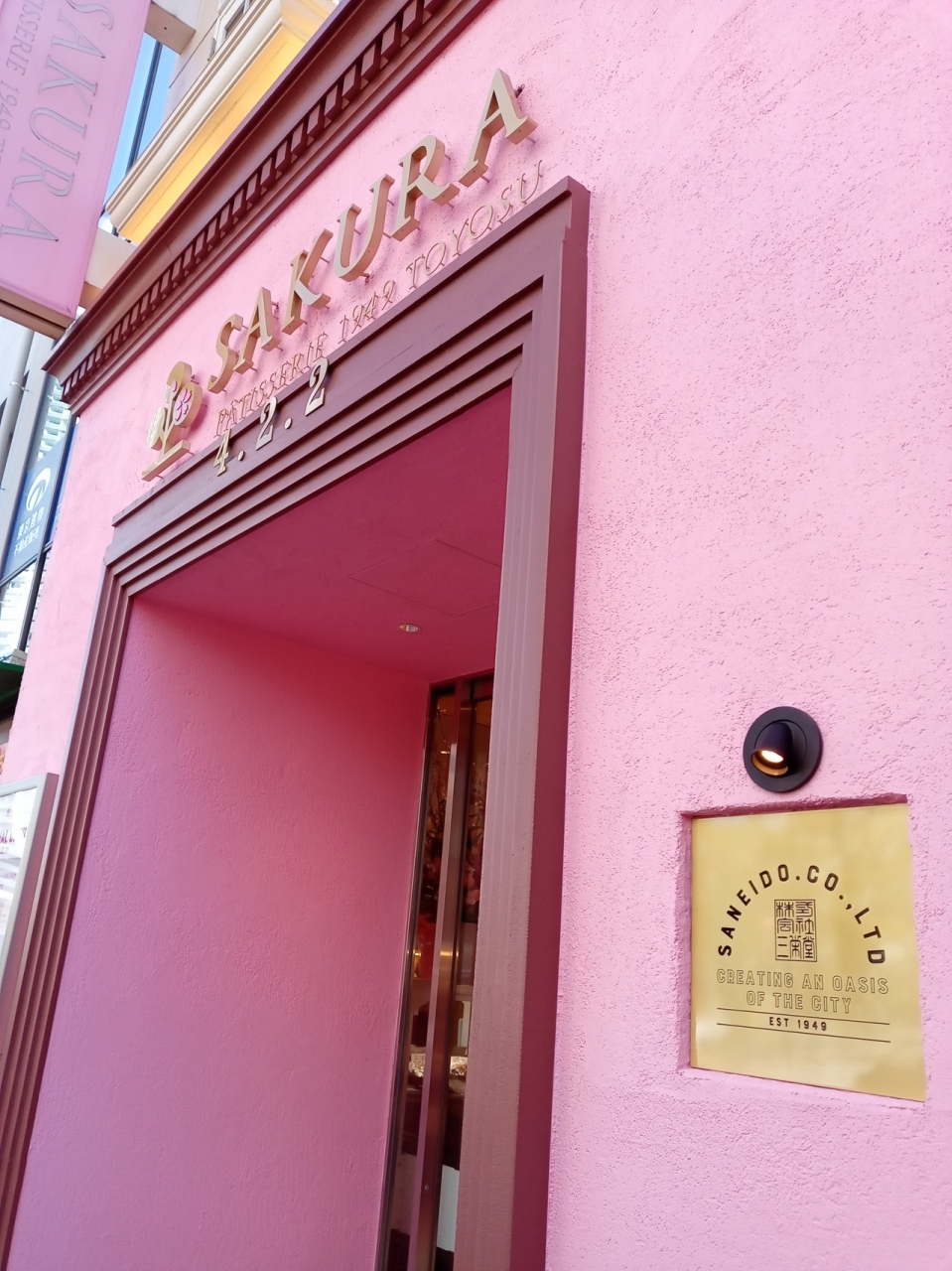 パティスリーSAKURAの店名通り、建物がサクラ色となっている外観も可愛らしいショップです。