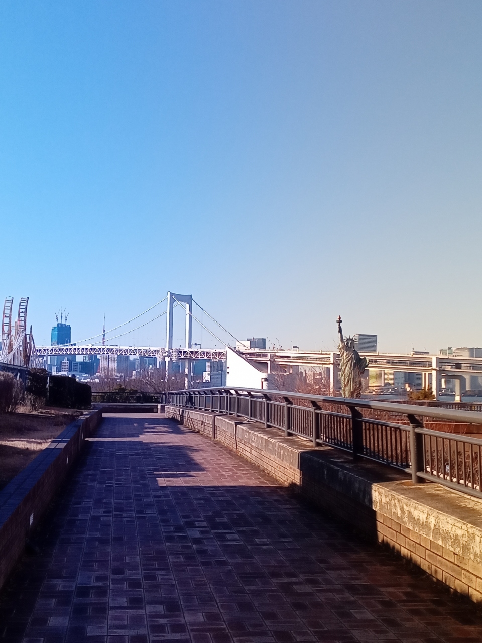 晴れた日でしたので、とても綺麗なお台場の風景が見られました。「スカイウォーク」から間近に見ることが出来る自由の女神像も、青空の下、レインボーブリッジを背にのびのびとしている感じで、良かったです。