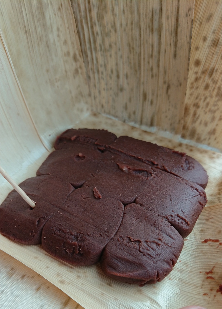 白山市に本店がある和菓子屋さん圓八の人気商品といえば、何といってもあんころ餅です。それが名鉄エムザの地下でも販売しています。竹皮に包まれた風情のあるたたずまいで、さらっとしたこしあんの中に一口サイズのお餅が9個入っています。あっさりとしていて飽きがこない、美味しいあんころ餅で旅のお供などにも最適です。