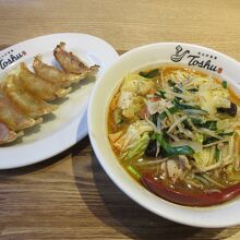 旧中山道に造られている仲宿商店街に建つ中華料理の店です。多くのお客さんが入店していたことや、コロナ感染予防がしっかりされていたこと、店頭に置かれたメニューに料理の辛さが記載されていたことなどから利用しました。野菜たっぷり赤タンメンの辛さはそれほどではありませんでしたが、野菜がたくさん入っていてスープの味もしっかりしていました。看板メニューの餃子はニンニクが効いていて餡もたっぷり入っていました。かた焼きそばの具も野菜や海老がたくさん入っていました。全体にどの料理も野菜がたっぷり入っていて、健康に気を使ったメニューが多くありました。麺や定食に付くご飯の量を選ぶことができます。昼前に入店しましたが、広い店内は満席になるほどで、商店街の人気店だと感じました。