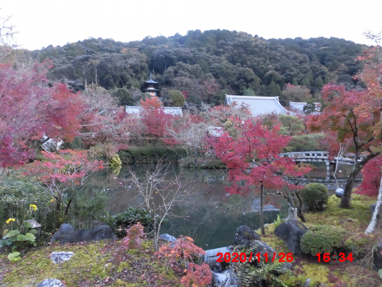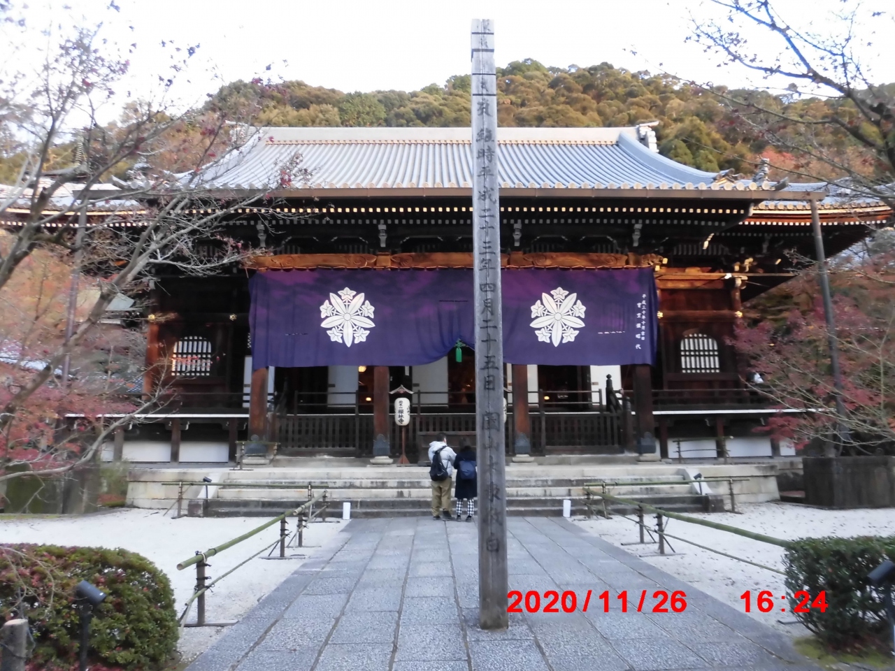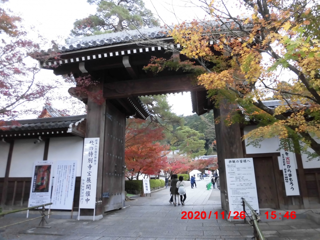 京都市観光で立ち寄りました。永観堂 (禅林寺)は、浄土宗西山禅林寺派の総本山の寺院で、山号は聖衆来迎山(しょうじゅらいごうさん)、本尊は阿弥陀如来(みかえり阿弥陀)でした。通称の永観堂で知られ、紅葉の名所として訪れました。係りの人は慣れていて、寺宝展拝観券は紅葉をあしらってあり、販売も誘導もテーマパークのようにベルトコンベアー式でした。