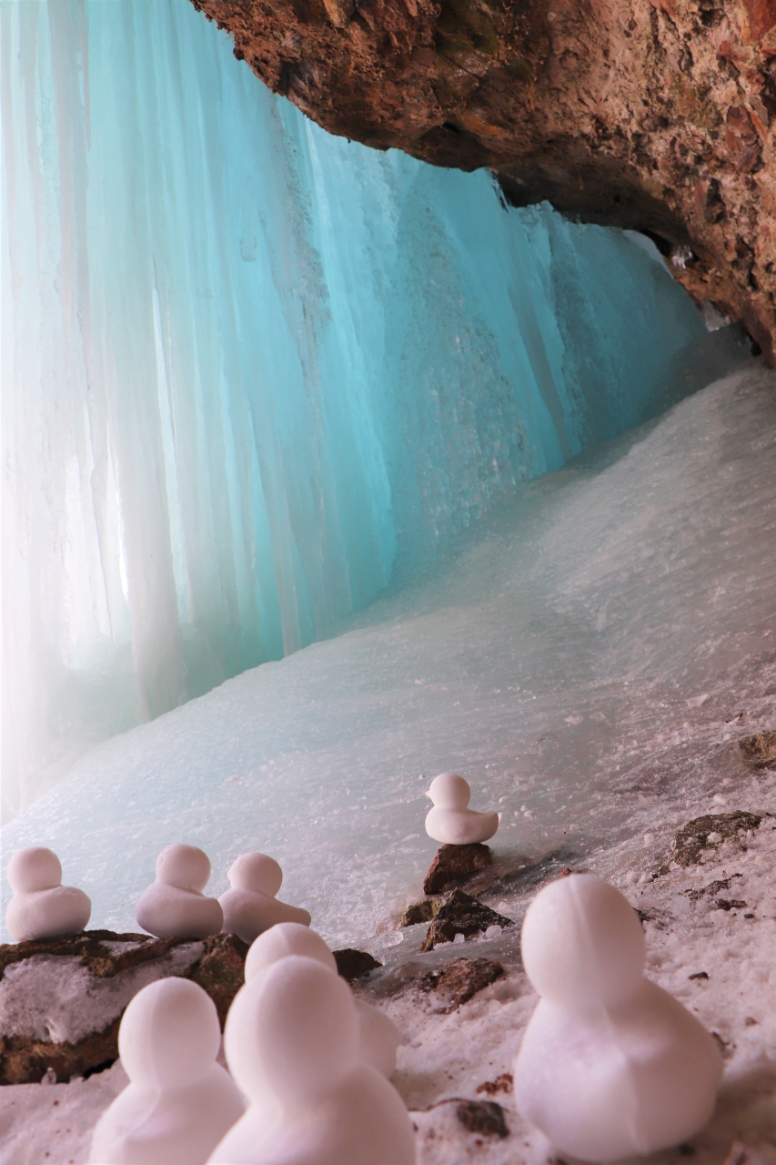 日陰にある滝だからこそできる時間をかけて作られたアイスブル―の氷の滝の名は庵(いおり)滝。。