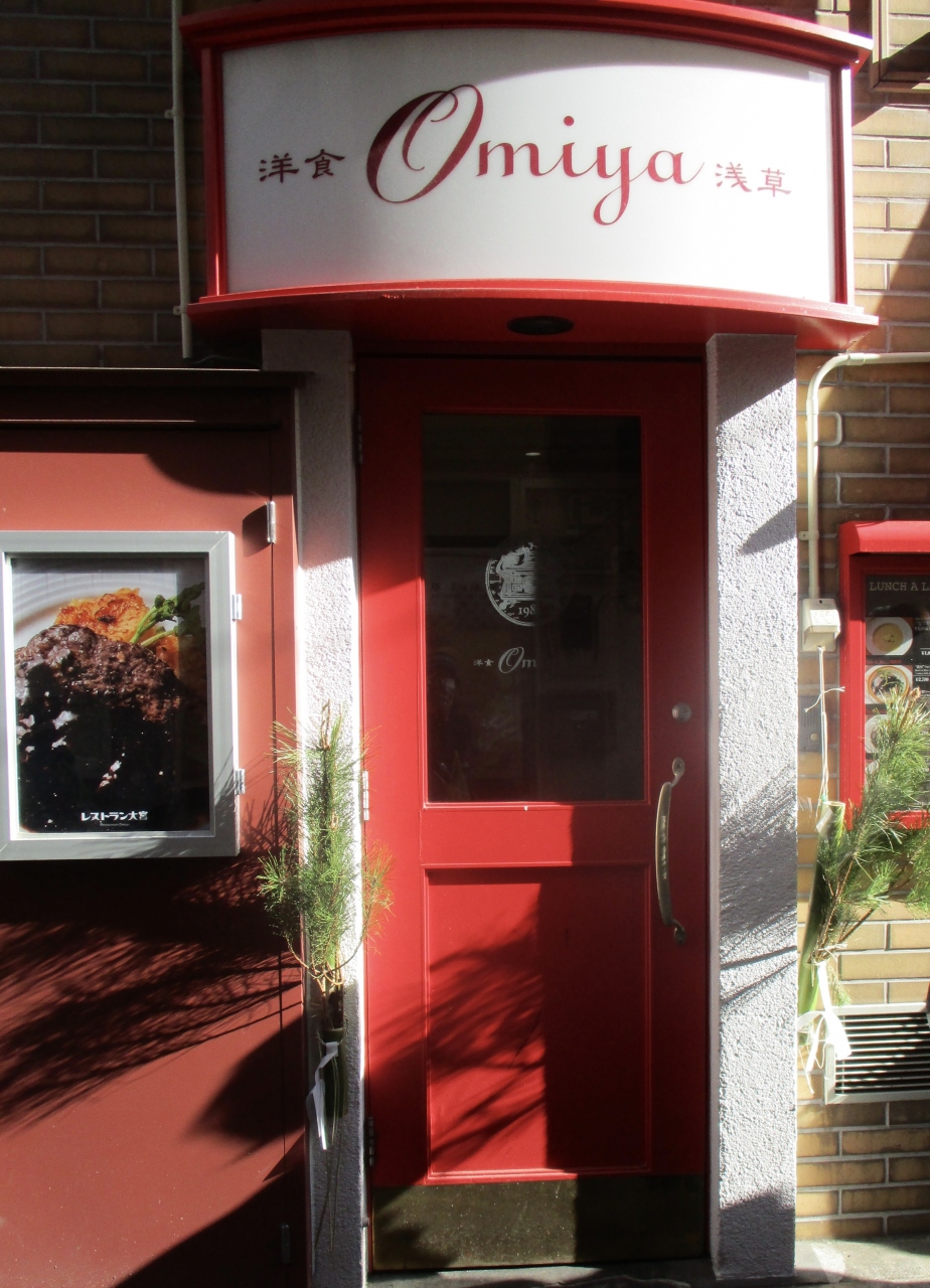 浅草神社に初詣に行く途中、混雑している仲見世通りを避けて、その左手の小径を歩いていたら、行列ができていました。赤い可愛いお店でした。外観だけで入ってみたくなるお店でした。私の大好きなハンバーグがおいしいデミグラスソースでいただけました。