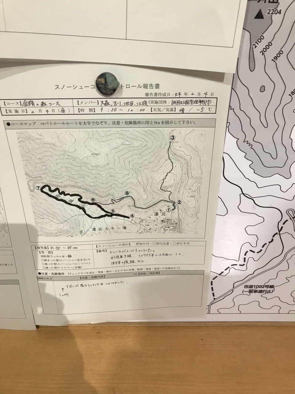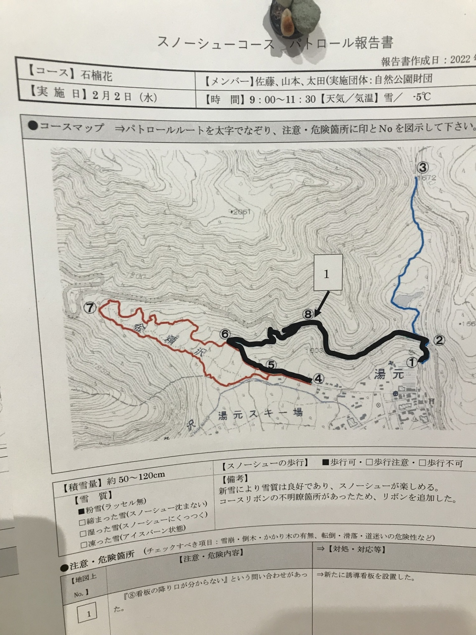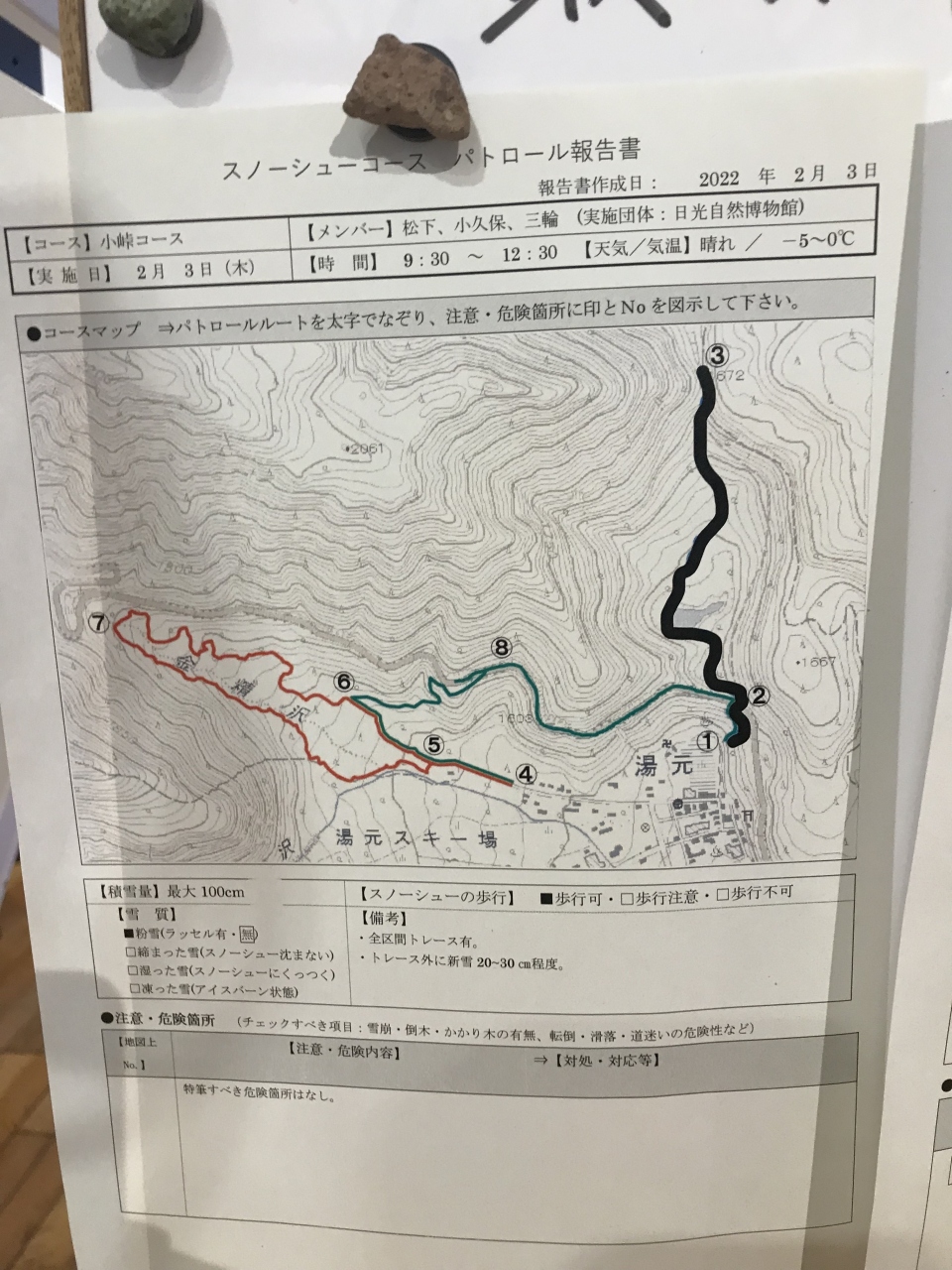道の状態や注意点なども記されていたので、スノーシューハイキングを計画している方は必見の情報でした。