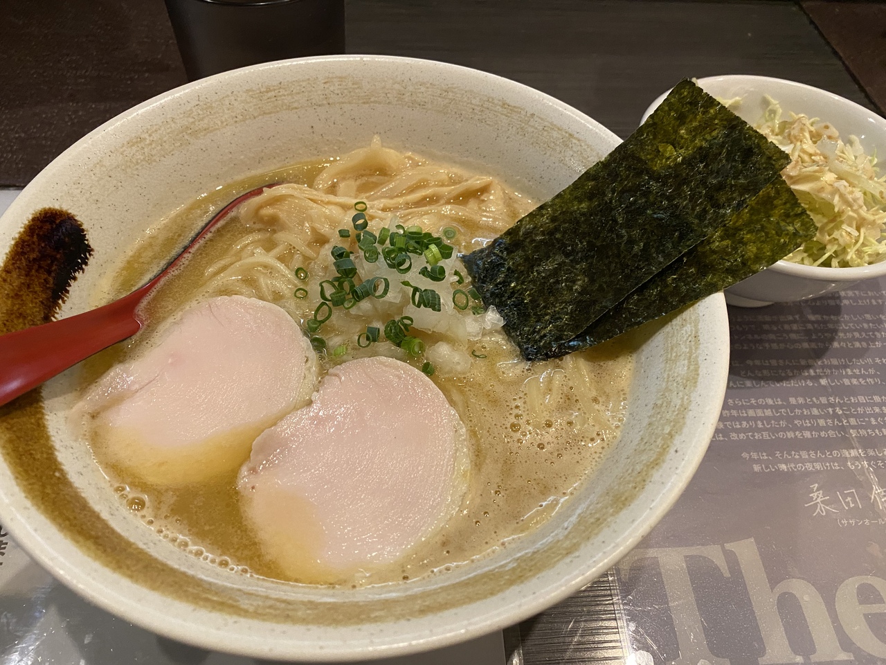 中板橋駅近くにあるラーメン屋さんです。このご時世で出社とリモートワークをハイブリットで活用している中で、出社途中に途中下車して食べました。鶏白湯の王道的な味です。サラダは無料で着くのが、罪悪感を薄めるのがいいですね笑