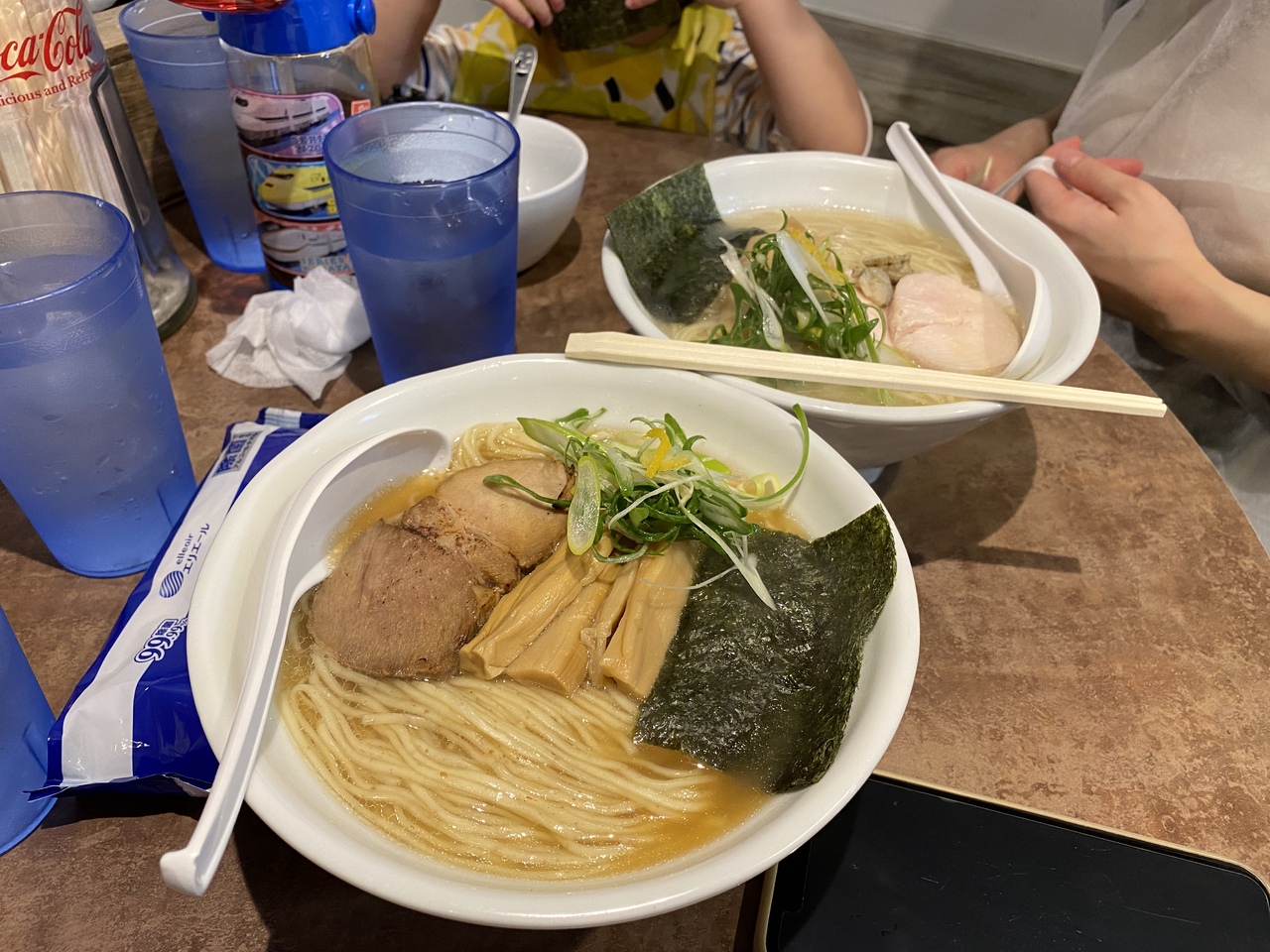 池袋駅西口にあるラーメン屋さんです。この日は下の子が寝たこともあって久々に家族で利用しました。西口では1番のお気に入りのお店です。3歳の息子も醤油ラーメンが大好きなので、この日は醤油ラーメンと名物のホタテラーメンを注文。子供用の取り皿ももらえて大満足です。