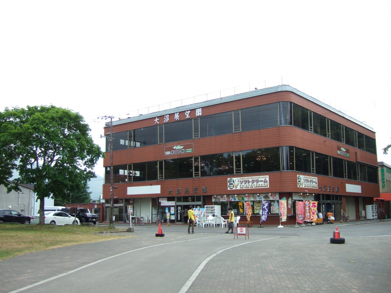 大沼公園駅から大沼湖畔に歩いていくと、湖のほとりにある大きな建物です。