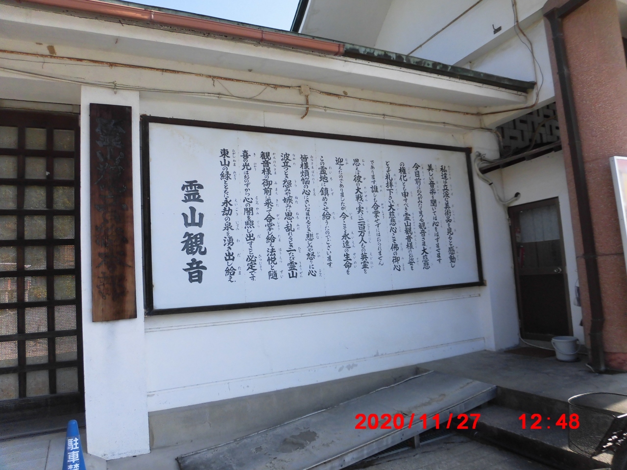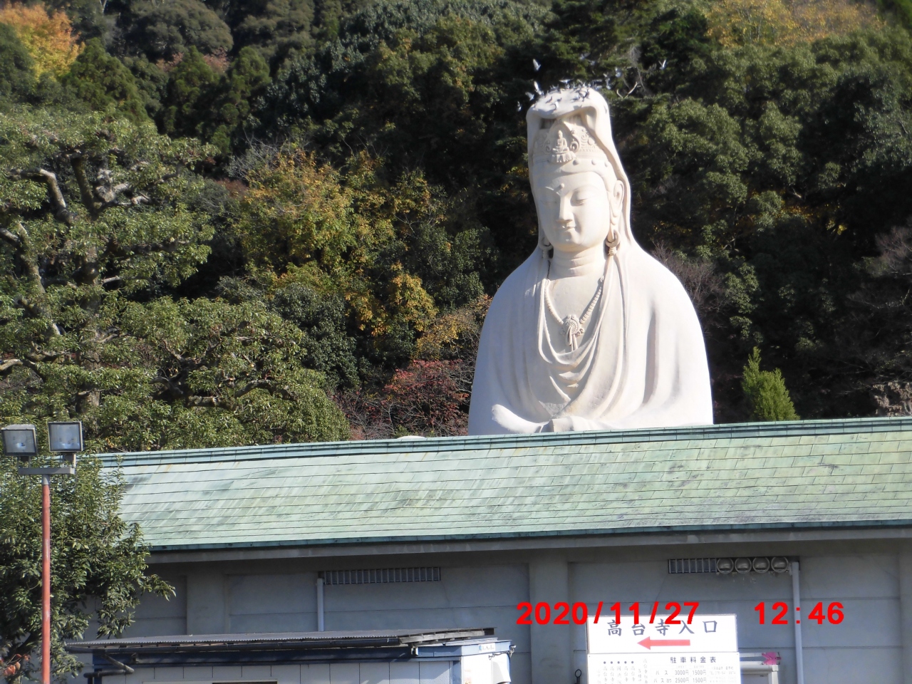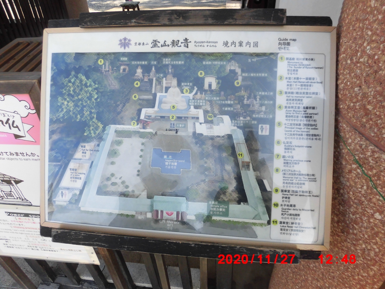 京都市観光で立ち寄りました。霊山観音は、説明板によると、昭和30年に第二次大戦戦没者の慰霊の為、東山を背景に白衣の巨大観音坐像(高さ24m)を建立、本堂内に十一面観音と仏舎利、二階の観音胎内に十二支の守り本尊を安置してありますと書いてありました。境内に縁結びの愛染明王堂もあります。立ち寄った時は有料ですが300円なのでお手軽です。