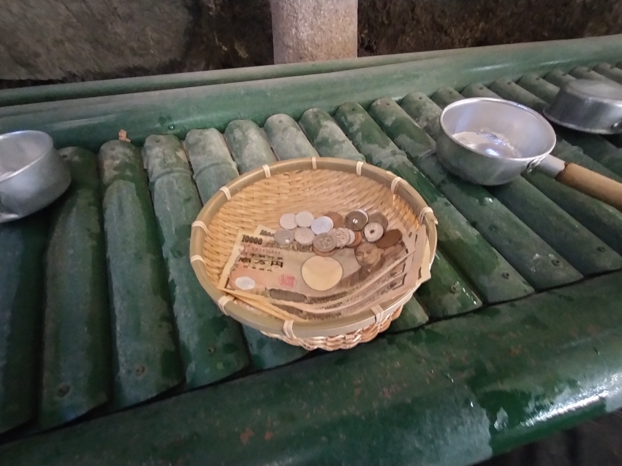 拝観料はかかりませんが100円を払うとろうそくと線香と銭を洗う籠をもらってから洞窟内に入ることになります。