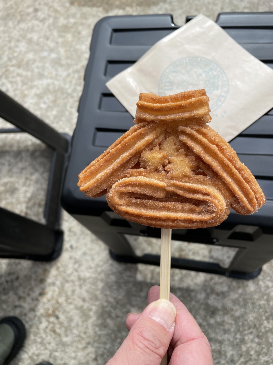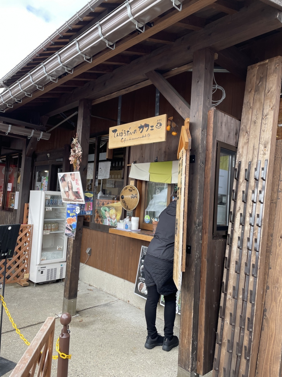 白川郷の合掌集落が見渡せる天守閣展望台にあるお土産屋兼飲食店です。お店の外にもイートインコーナーがあって五平餅やインスタ映えのする合掌造りの形をしたチュロスなど販売していました。可愛らしいのでチュロスを購入。甘すぎず、すごく美味しかったです。