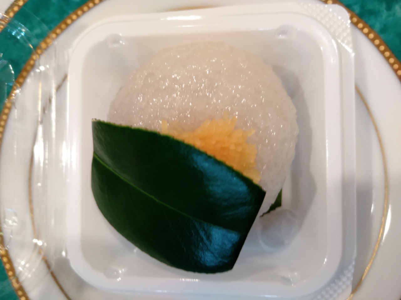 八宝焼 が名物のお店なのですが、2月椿のころに城南宮参道限定で販売されている椿餅を購入しました。中心部に黄色の花芯をあしらい、「白玉椿」を表現しています。椿餅の葉っぱもついてます。上品な道明寺のお菓子でおいしい。八宝焼もこの参道で売ってました。