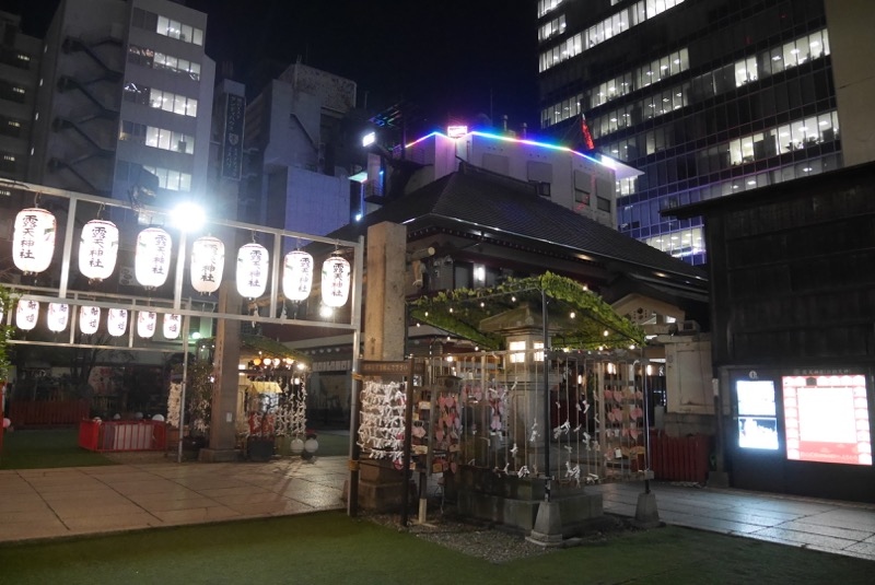 昔はきっと、寺町のなかにあるその町の中心的な神社だったのでしょう。時が経ち、まわりには高層ビルがみっしり。神社の敷地内に立って、上を見上げてみると狭い空のなかに、この神社がぽっかりとあるのがわかります。なにげに展示物(かつて祭祀で使われていたようなもの)の多い神社です。