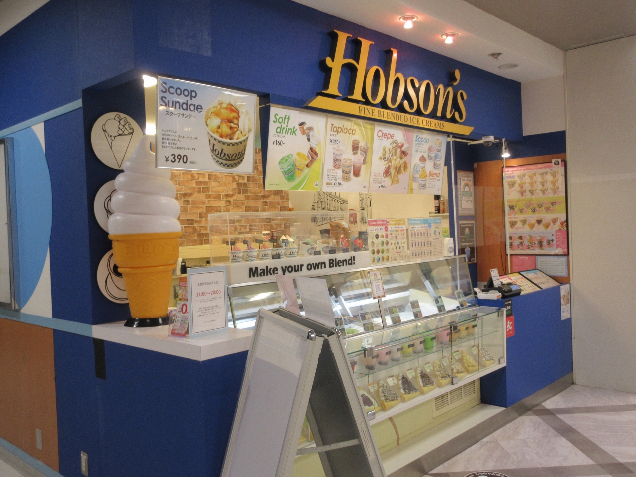 武蔵境駅前のイトーヨーカドー西館地下1階のフードコートにあります。地下へ降りていくと甘い匂いがしてホブソンズに来ました。16種類のアイスクリームがあり、アイスクリームをベースにしたブレンドが特徴です。好みのフルーツやクッキーやアイテムをブレンドするブレンドアイスクリームは色々試したくなります。クレープやタピオカドリンクなどもあり、フードコートで座ってゆっくり楽しめます。