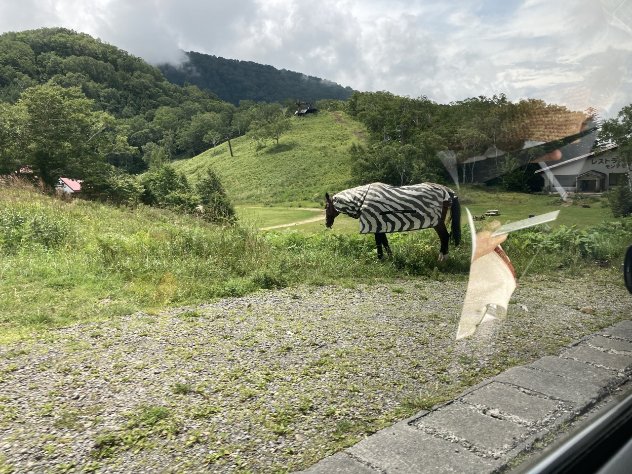 夏に志賀高原をドライブ中にスキー場の麓に何とシマウマ!