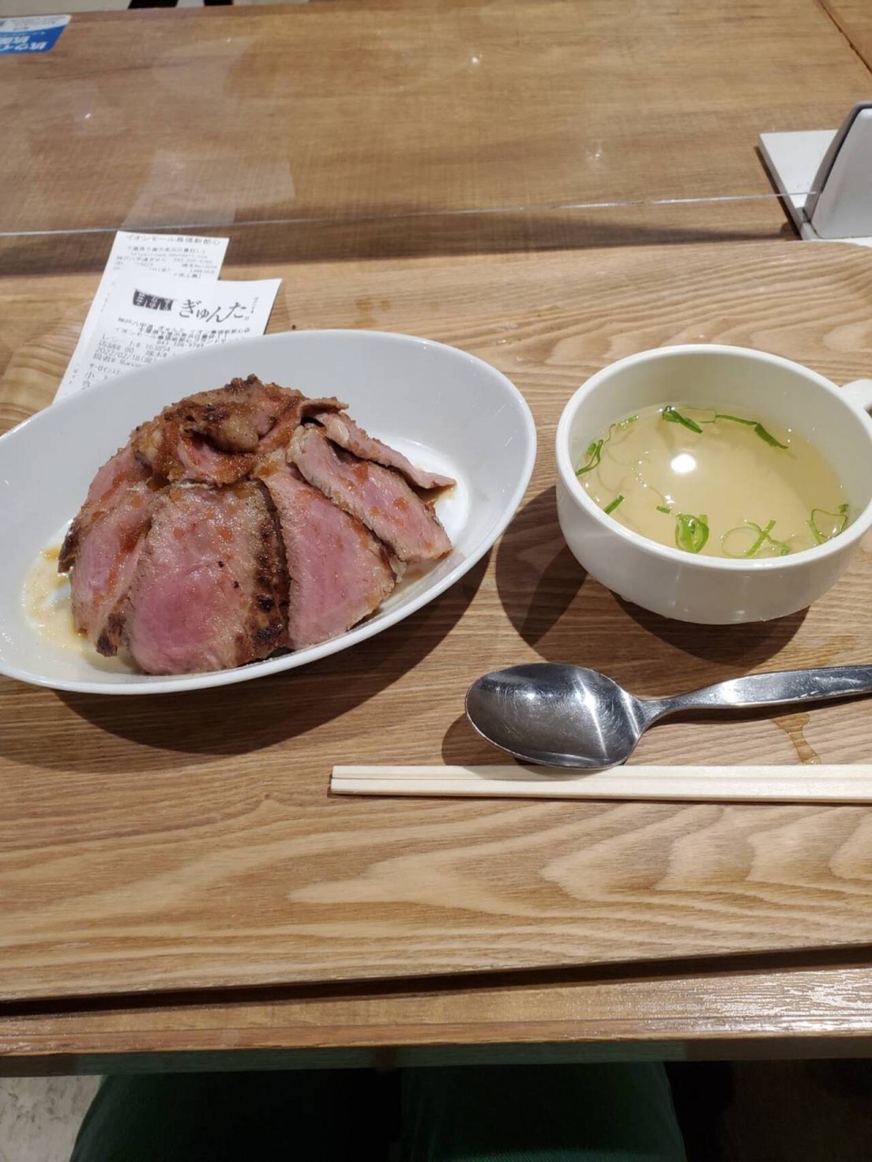 サーロインステーキ丼をたべました。スープもついてきてお得だなと思いました。