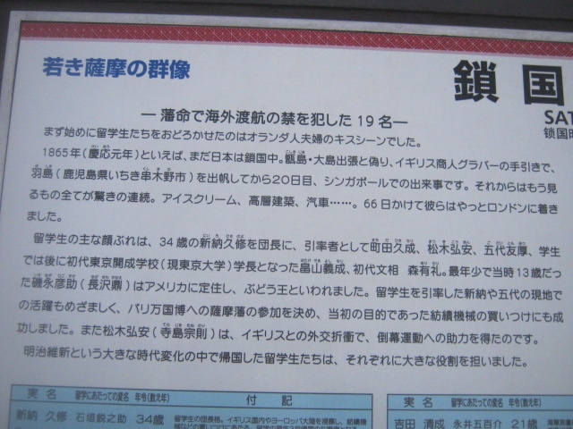 鹿児島中央駅のすぐ向かい、バス乗り場が並ぶエリア内に沢山の人物像が立体的に配置されている像がこちらです。それぞれの人物としては小さいですが、群像という名の通り、複数の人物が躍動的にデザインされていて、なかなか見応えがある像だと思います。