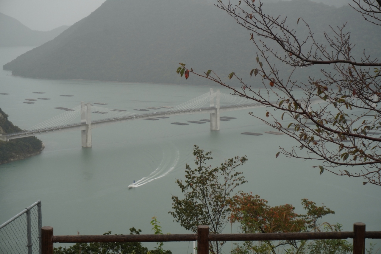 備前(ハートマーク)日生大橋は、日生の市街と鹿久居島を結ぶ全長765mの白い橋。橋の正式名称に絵文字(ハートマーク)が使われているのが珍しいんだとか。橋の下あたりには地元名産の牡蠣いかだが一帯に広がっていて、その景観もちょっと独特かなと思います。
