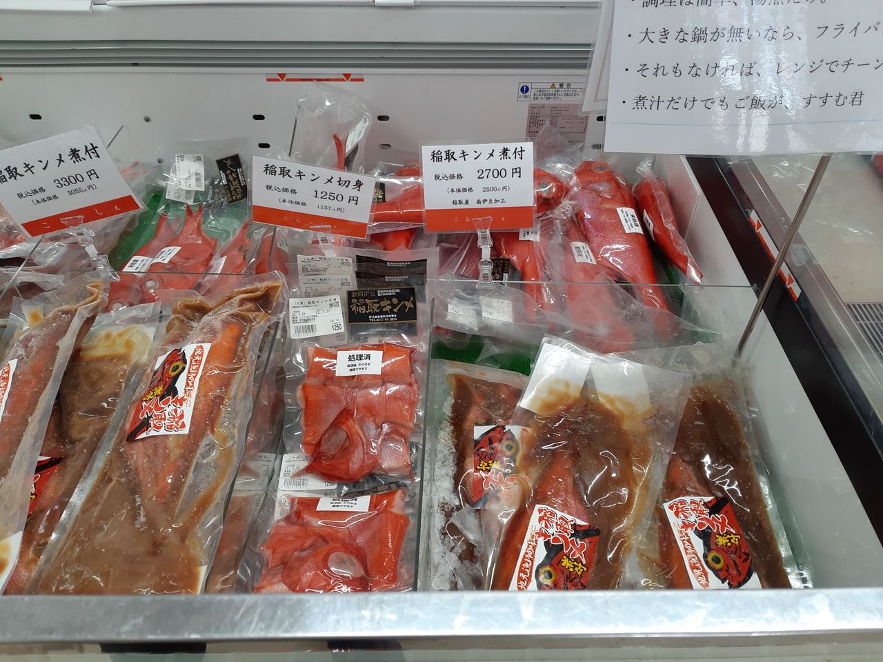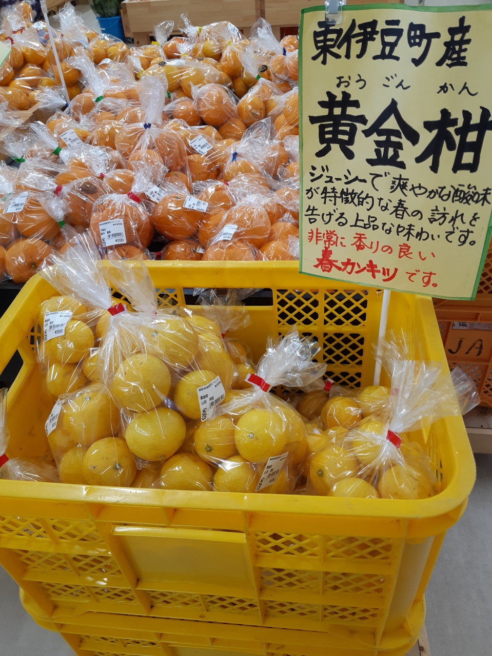 東伊豆町役場の前にある2019年にできた直売場で、海沿いなので海産物ばかりかと思っていましたが、驚くことに柑橘類など農産物もありました。漁協と農協がコラボした珍しい直売場だそうです。もちろん金目鯛も売ってましたが、午後だったからか、想像よりも魚類が少ない気がしました。柑橘類やジャム、ドライフルーツ、お土産品などは充実していました。土、日曜日に開かれる稲取漁港『港の朝市』の場所の向かいなので寄りやすいと思います。