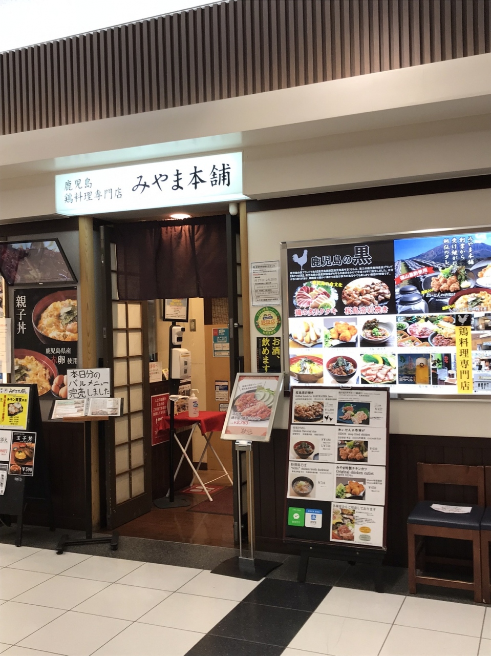 鹿児島中央駅には、レストランが7、8軒並んているエリアがあって、そのうちの1軒です。鳥料理専門店ということで、チキンカツや唐揚げなどがあります。唐揚げだけこちらでいただきましたが、ジューシーで、これが薩摩鳥かあと感動でした。1人席もあって入りやすかったです。