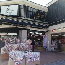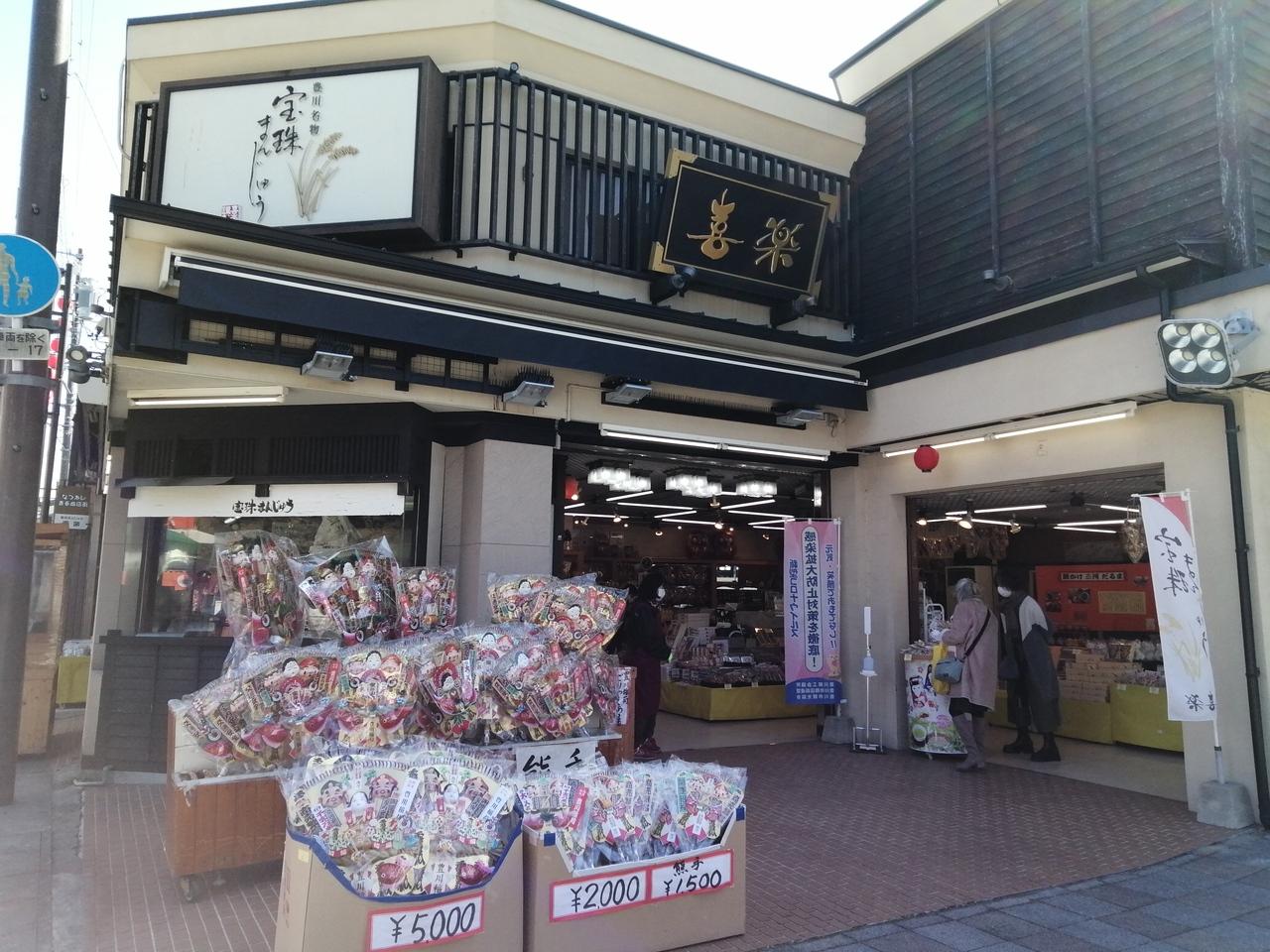豊川稲荷の上面入口である総門前の角にある土産物屋です。「豊川銘菓 宝珠まんじゅう」という看板が気になり、覗いてみると店内に焼き場がある。焼きたてが食べられる~と思い尋ねてみると…バラ売りなしとのこと。最低でも5個入りから。なんで?ちょっと1個味見したいって言う人もいると思うんですが…。5個入りを買えと言われたらそれまでですが。この時は12:30頃で、すでに焼き作業は終了していましたが、もしかしたら焼いている途中ならバラでも売ってくれるかもしれません。知らんけど。
