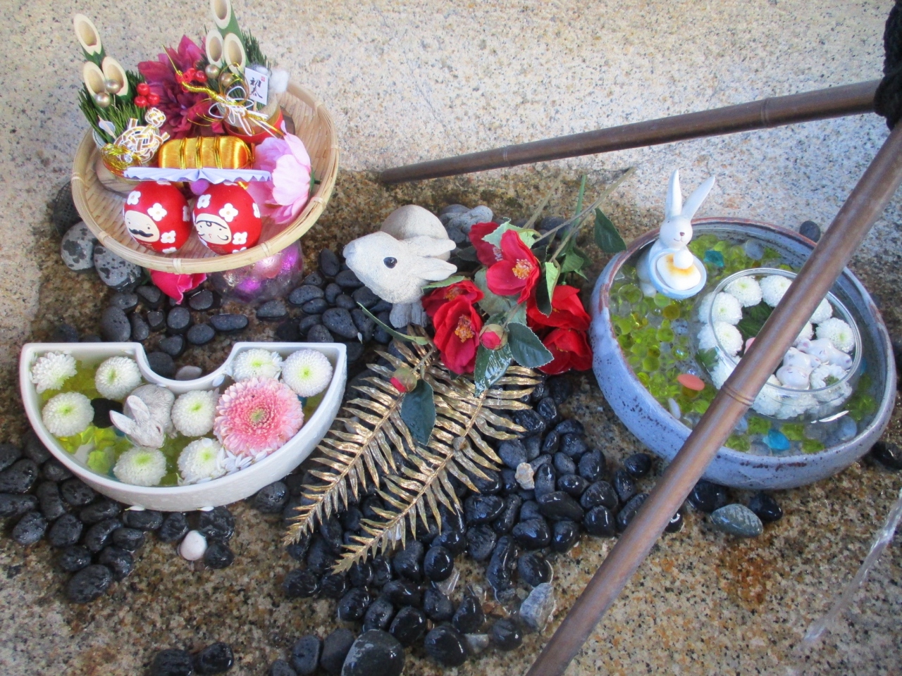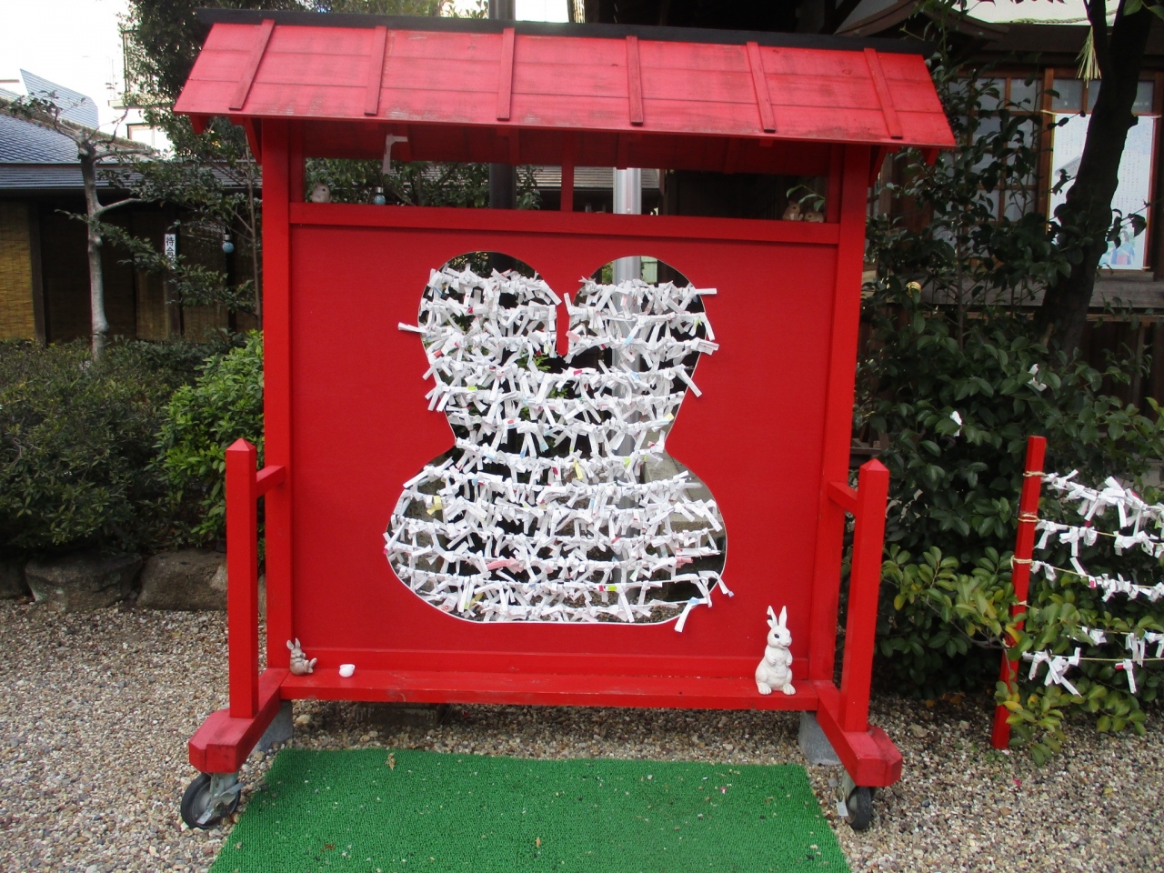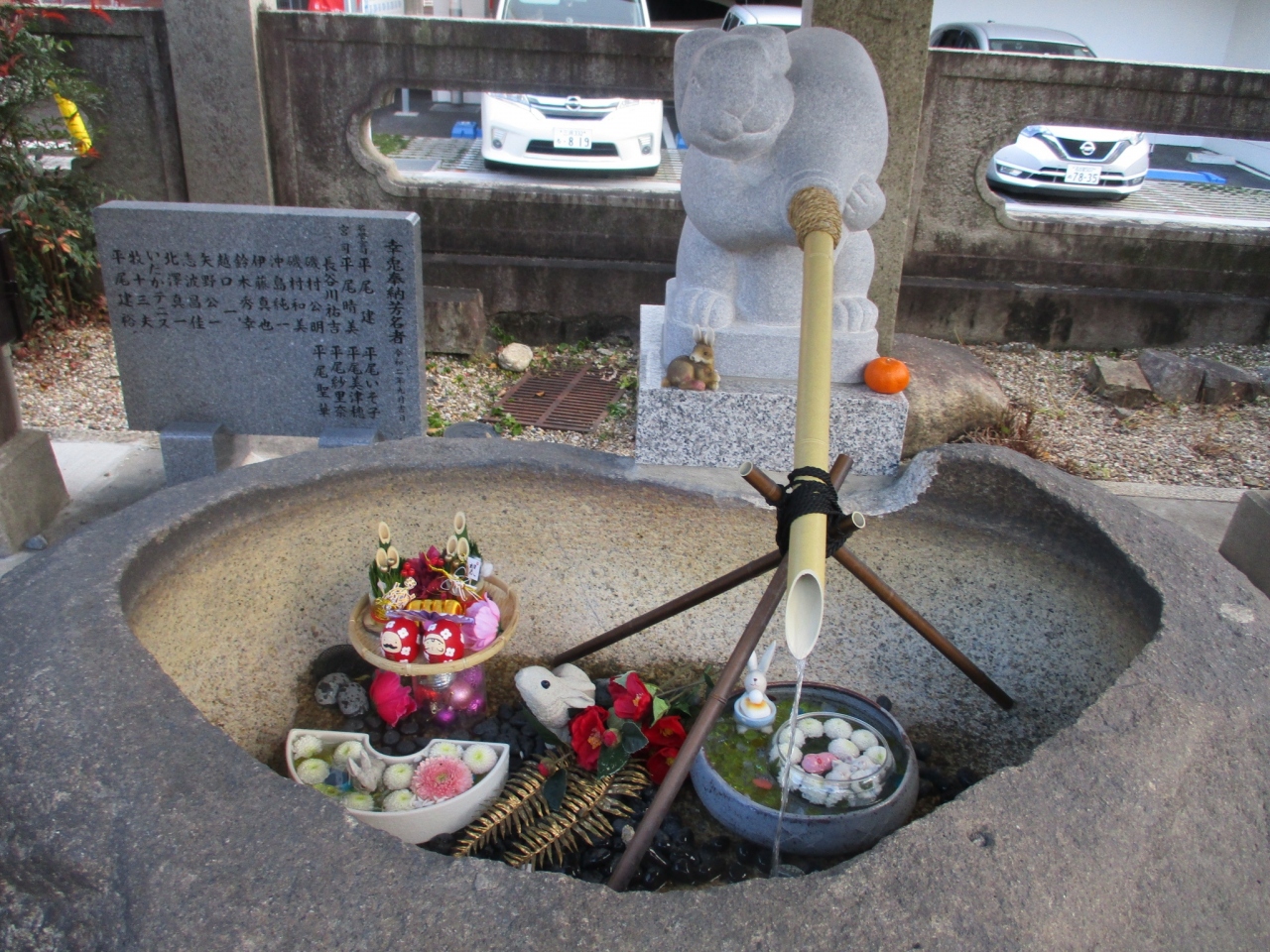 大須3丁目にある神社です。奈良県の大神神社から神様を迎え、1570年に創建されました。鳥居の両脇には小さな鳥居が2つあり、「三輪鳥居」というそうです。この2つの鳥居を八の字にくぐると3倍のご利益があるといわれています。そしてうさぎがたくさんいる神社でとてもかわいかったです。手水舎の飾り、ずっと見ていたくなります。どなたが飾りをされているのかなと思いました。なでうさぎもいました。