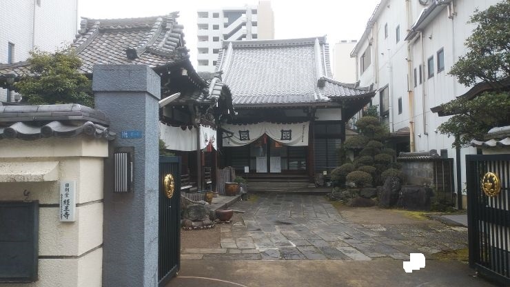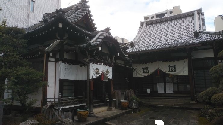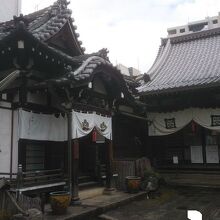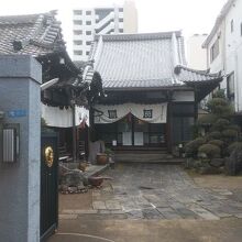 周辺は中小のビルが混在する住宅街。寺院の敷地も住宅街に溶け込むようにあった。