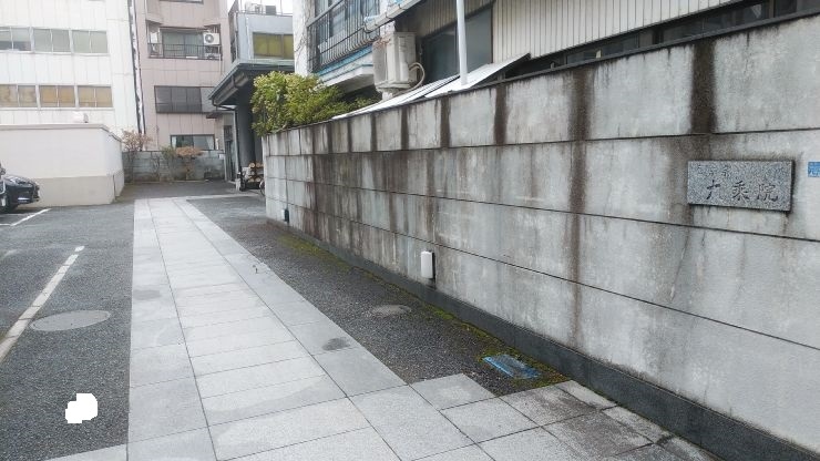 周辺は中小のビルが混在する住宅街。細い道沿いに入口があった。境内は駐車場として整備されており、現代風な雰囲気になっている。本堂の建物も現代的な建造物になっていた。周辺に数多くある寺院の中でこういった個性もありだと感じた。