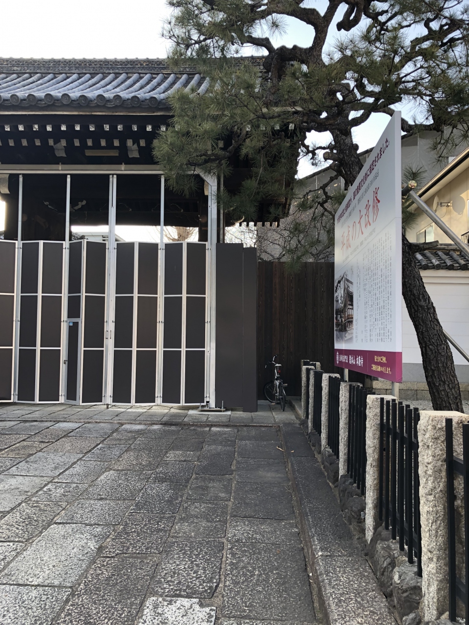 本堂と祖師堂は重要文化財に指定されたそうですが、平成28年から10年間、江戸時代再建以来の大修復を行っていると看板が出ていました。本堂には工事幕が張られ、山門も工事用の扉でふさがれて、境内には入れないようになっていました。修復は平成38年までということですから、まだ数年はかかるということですね。