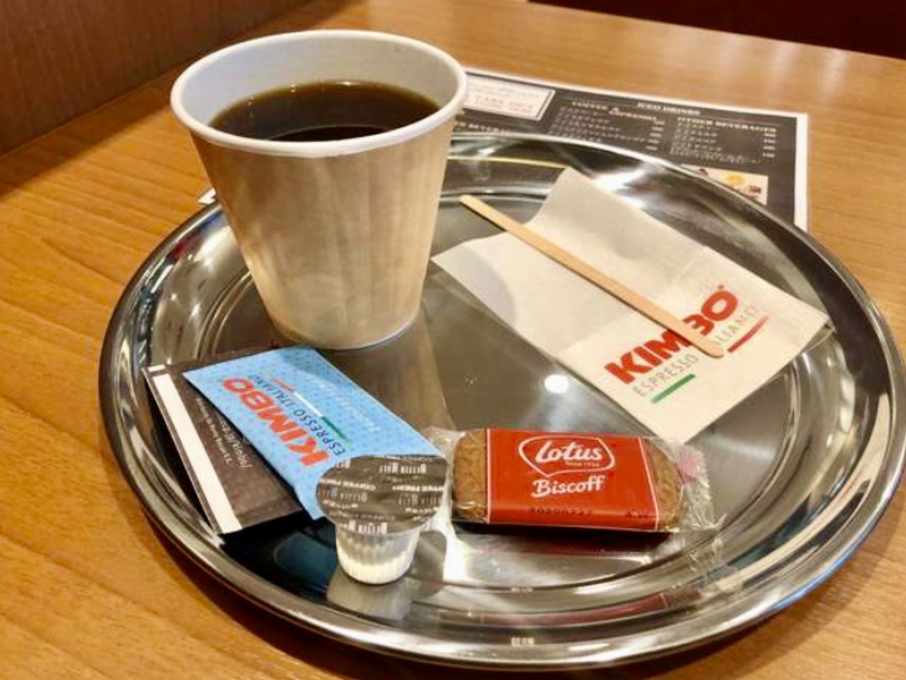 遠鉄百貨店の地下1階にあるカフェです。ブレンドコーヒー(400円)。コーヒーを注文したら、ロータスのクッキーが一枚ついてきました。ロータスのクッキー、美味いですね。