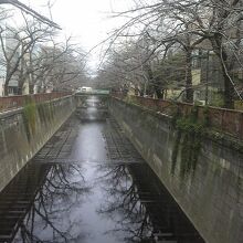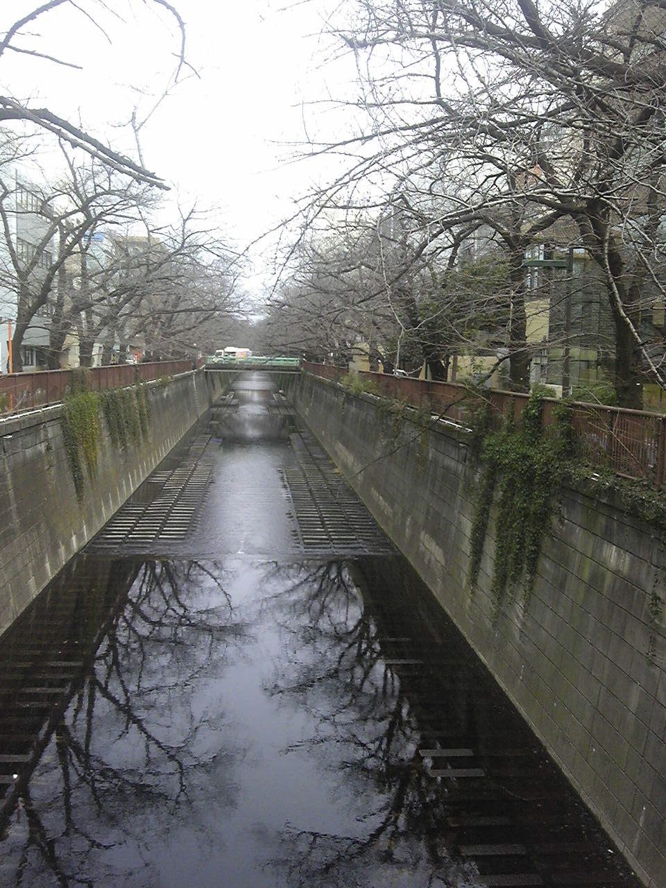桜の名所として知られる目黒川は、その周辺におしゃれなレストランやカフェが点在していることから、そのシーズンでない時にでも、けっこう人が沿道を歩いています。
