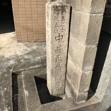 天満屋跡 中井正五郎殉難の地は、JR京都駅から北西へ徒歩10分くらいの場所にありました。石碑の隣にあるお地蔵さんの方が目立っています。最初は石碑がわからずにスルーしてしましました。石碑だけで駒札はありません。中井正五郎は、上洛後に尊譲派と親交があり、坂本龍馬・中岡慎太郎を敬愛した方と言われています。しかし護衛の新選組と戦ってこの地で死亡しました。