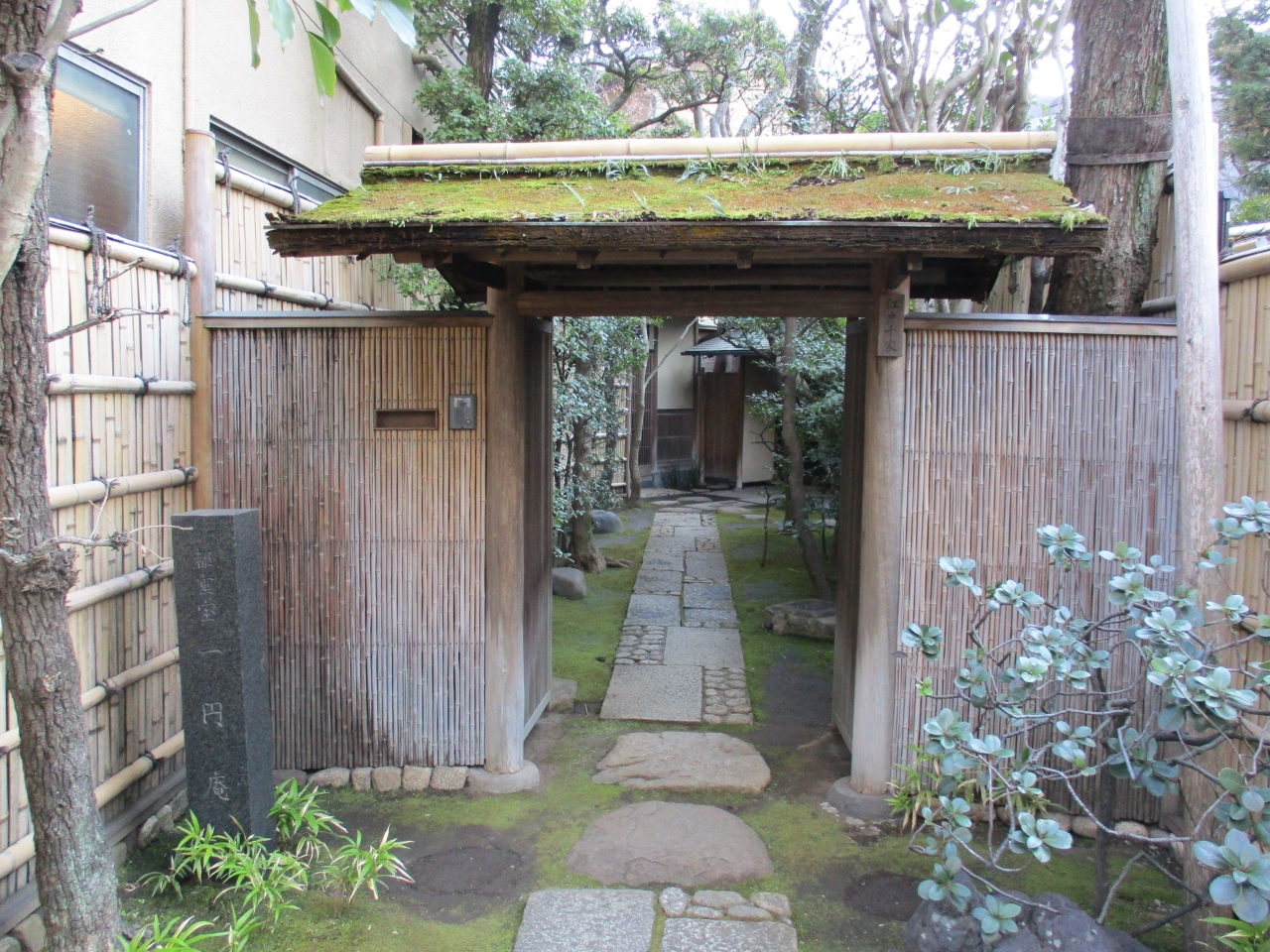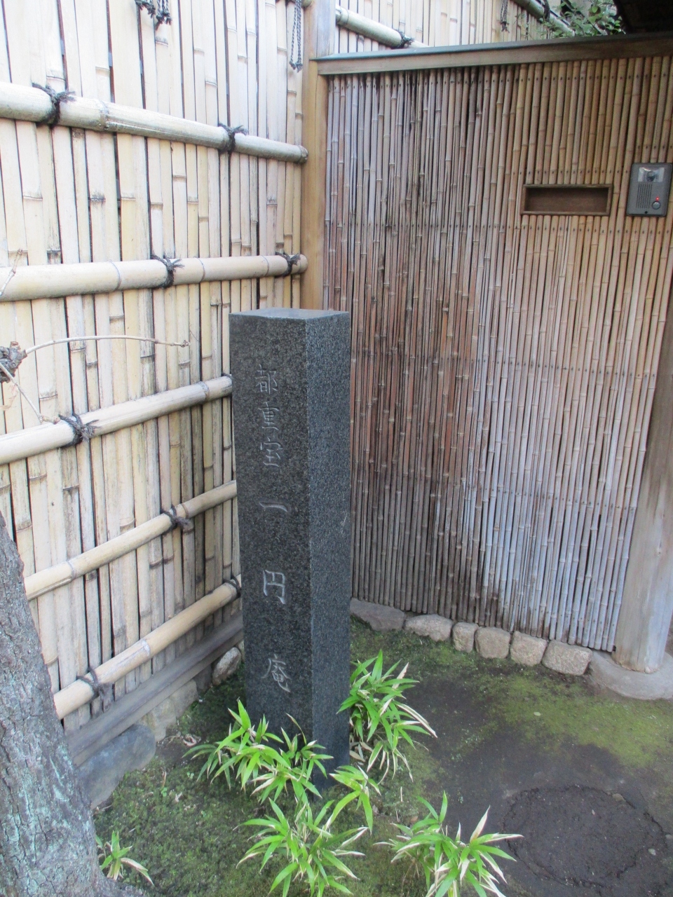 不忍池から池之端周辺を散策していて、とても趣がある門構えの建物があったので立ち寄ってみました。門の脇に一円庵と刻まれた石碑が立てられていて、茶道の茶室のようです。門から奥に入っていくと、お茶室があって、周囲から切り離したような静かな雰囲気で素敵でした。