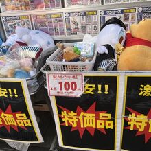 店頭には、100円の ぬいぐるみなどが ありますよ