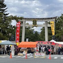 京都にある北野天満宮にて菅原道真の誕生日6月25日と命日2月25日にちなみ、毎月25日に開催される大規模な骨董市です。ちょうど訪れた日が25日だったので多数の露店が鳥居の前から参道にかけて並び、多くの人で賑わっていました。出展品は骨董品の他食品や衣料品も多く、想像していたのとはちょっと違いました。