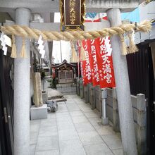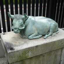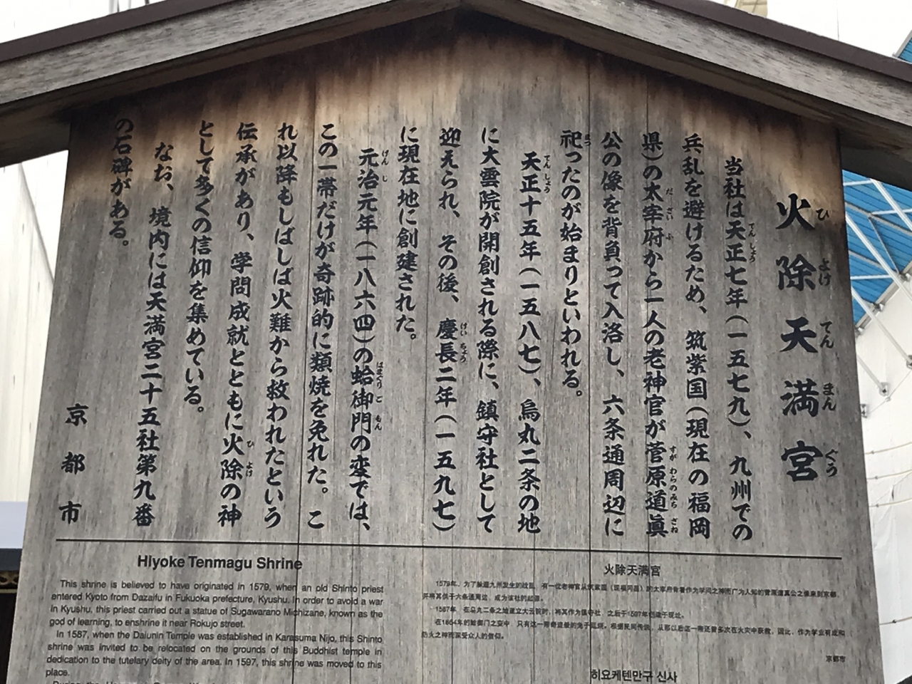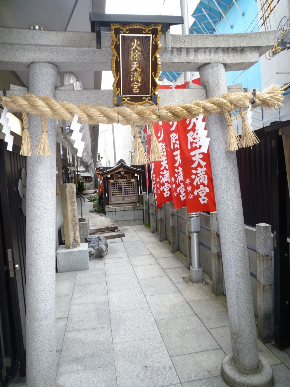 火除天満宮は、阪急電車「京都河原町駅」から徒歩2分の寺町四条下って東側の商業ビル下に参道が伸びていました。寺町通に面した入口に、「火除天満宮社」の大きな石標が立っていました。古然としたものでなく、洒落ていて現代的な感じです。ビルと駐車場に挟まれた細い道なのだが、所々に坪庭や橋が配置されて無機質な感じはありませんでした。撫で牛もしっかりといました。