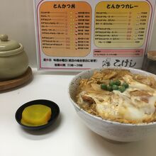 カツ丼ではなく、とんかつ丼が有名な店で、メニューは基本とんかつ、カレーしかないです。とんかつカレーもありましたが、スタンダードに、とんかつ丼を食べました。見た目はカツ丼と変わらず、卵がふんわりとのり、柔らかいカツでした。