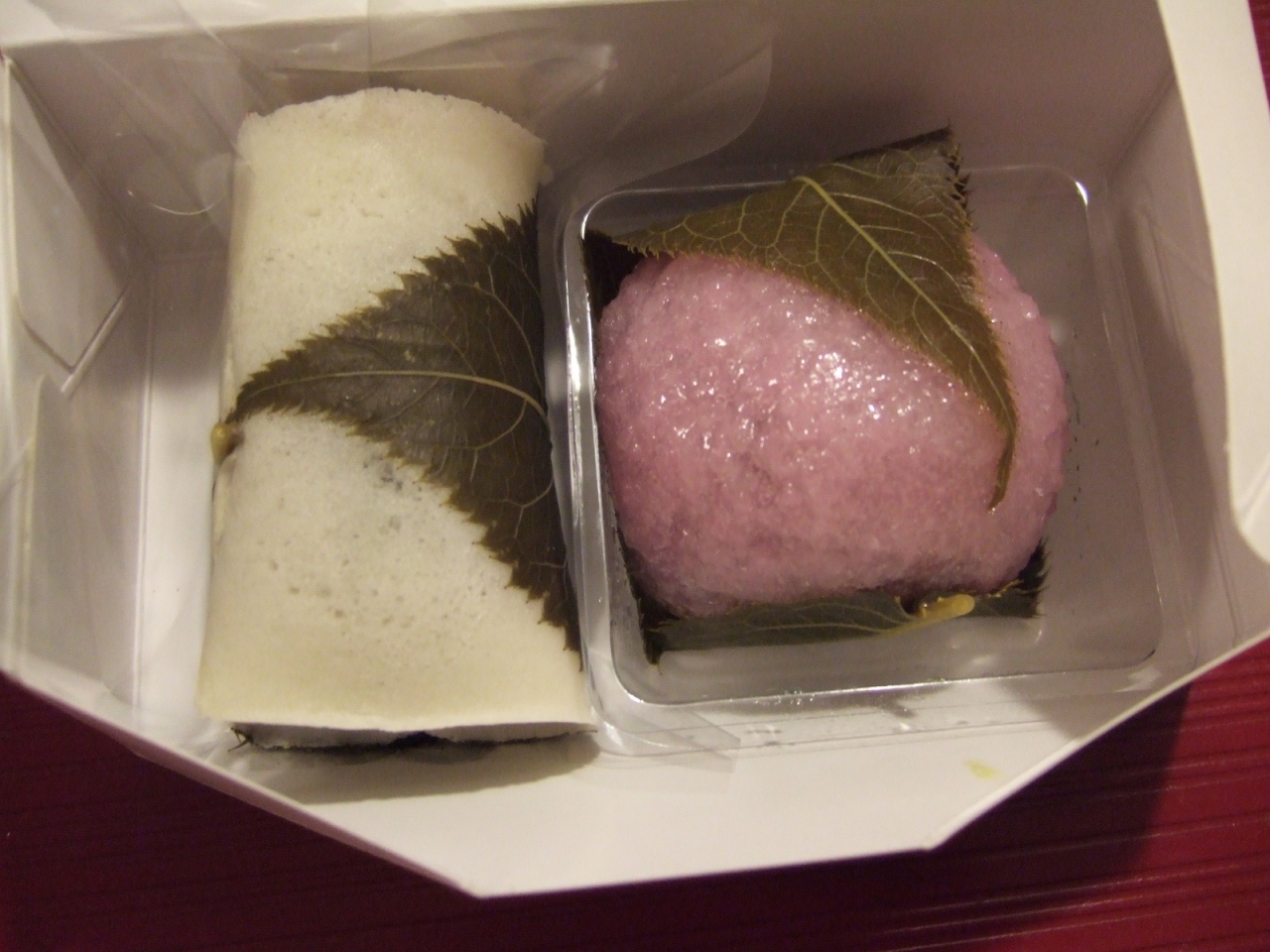 桜餅を買いに行きましたが、長命寺と道明寺の二種類がありました。長命寺はこしあんですが、少々皮が厚めの感じ。道明寺はつぶあんで柔らかく、あんこの甘さが際立っていました。