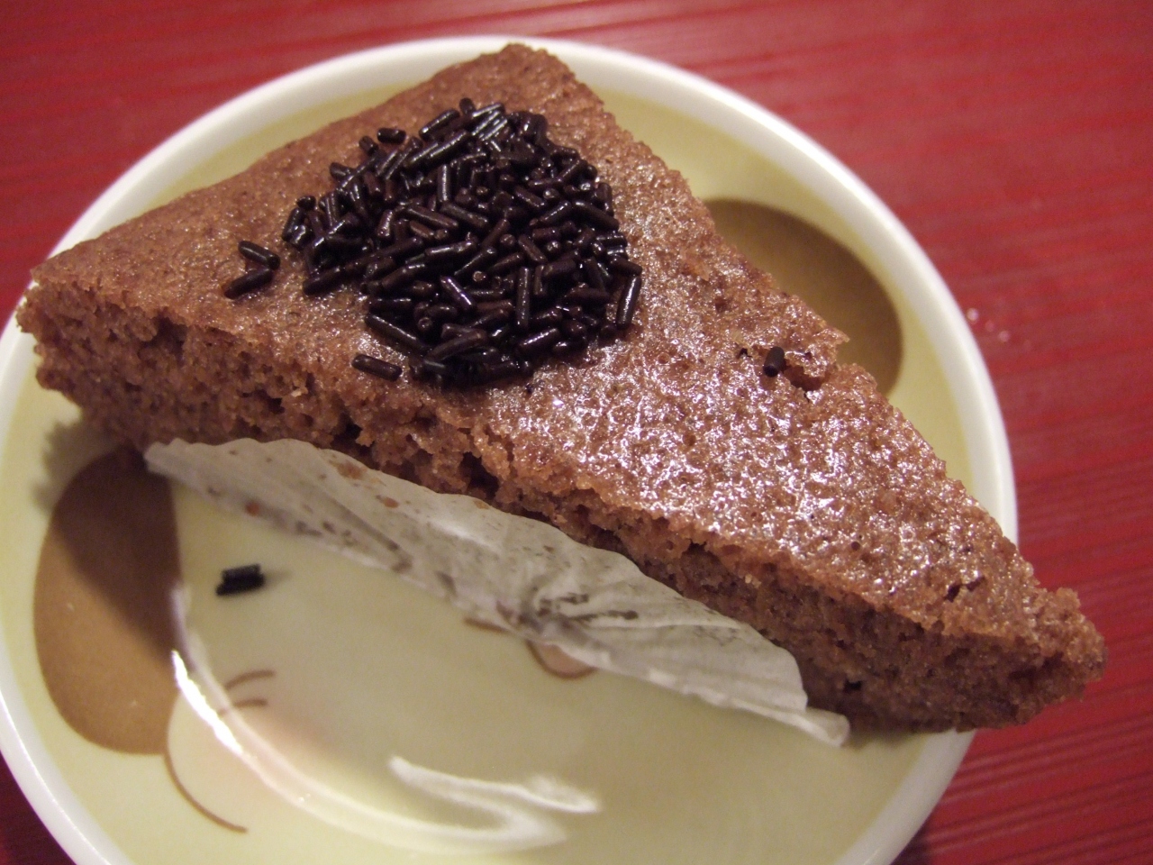 ココアが効いた三角形の蒸しパンで、上にはチョコレートスプレーが乗っています。懐かしい感じの甘さで美味しかったです。