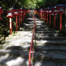 清流「貴船川」沿いにある「貴船神社」は、水の神様を祀る神社で、縁結びの神様としても有名です。総本宮へと向かう参道石段の両側には、朱塗りの灯籠がずっと続いていて、とても見応えがありました。豊かな自然に囲まれた場所にあるので、とても歴史とパワーの感じられる神社でした。