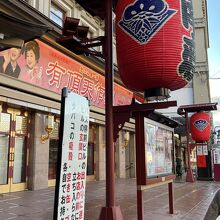 四条通沿いのバス停前にある京都四條南座。阿国歌舞伎発祥の地としても有名なだけあって歌舞伎の出し物も多く上演されます。最近は舞台などもにも使われているので、いろいろなイベントがあります。花道に近い席は迫力がありますね。