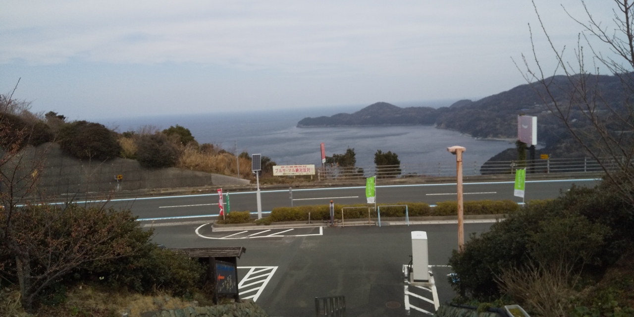 ちょっと不便を感じる道の駅です。階段をのぼり振り返ると瀬戸内海が見えます
