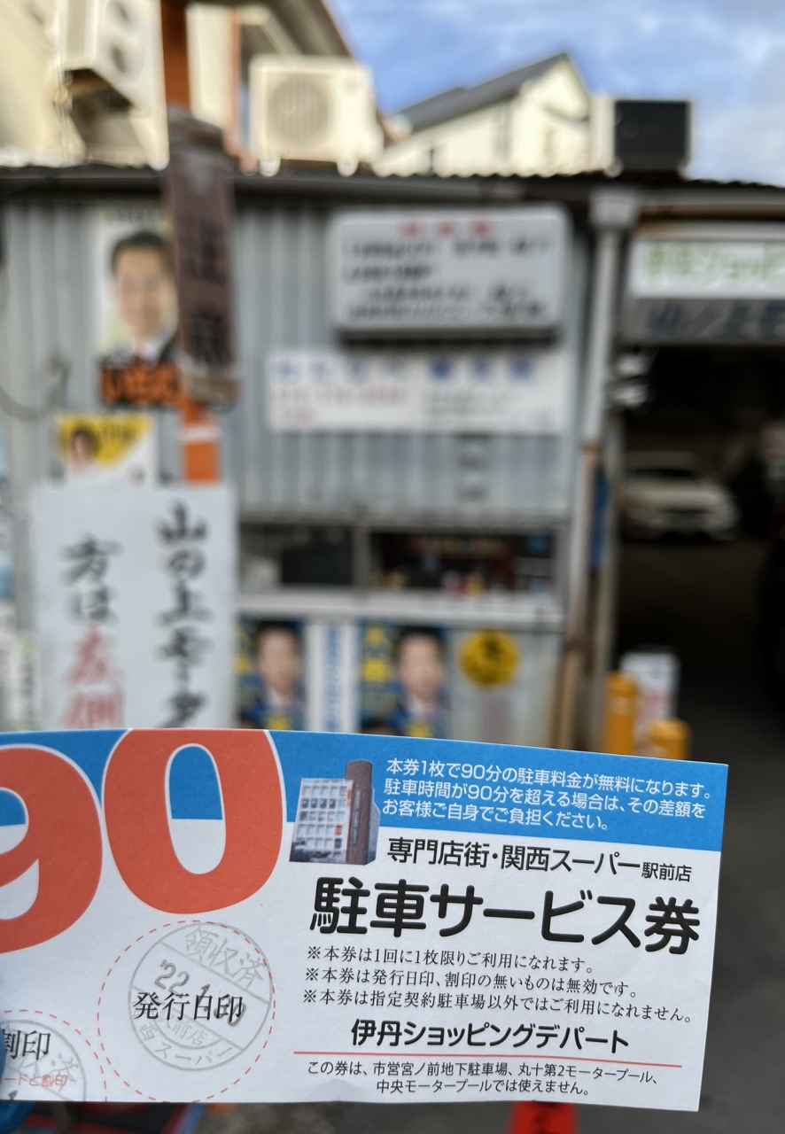 「伊丹ショッピングデパート」でお買い物したので 駐車料金が 無料になりました。